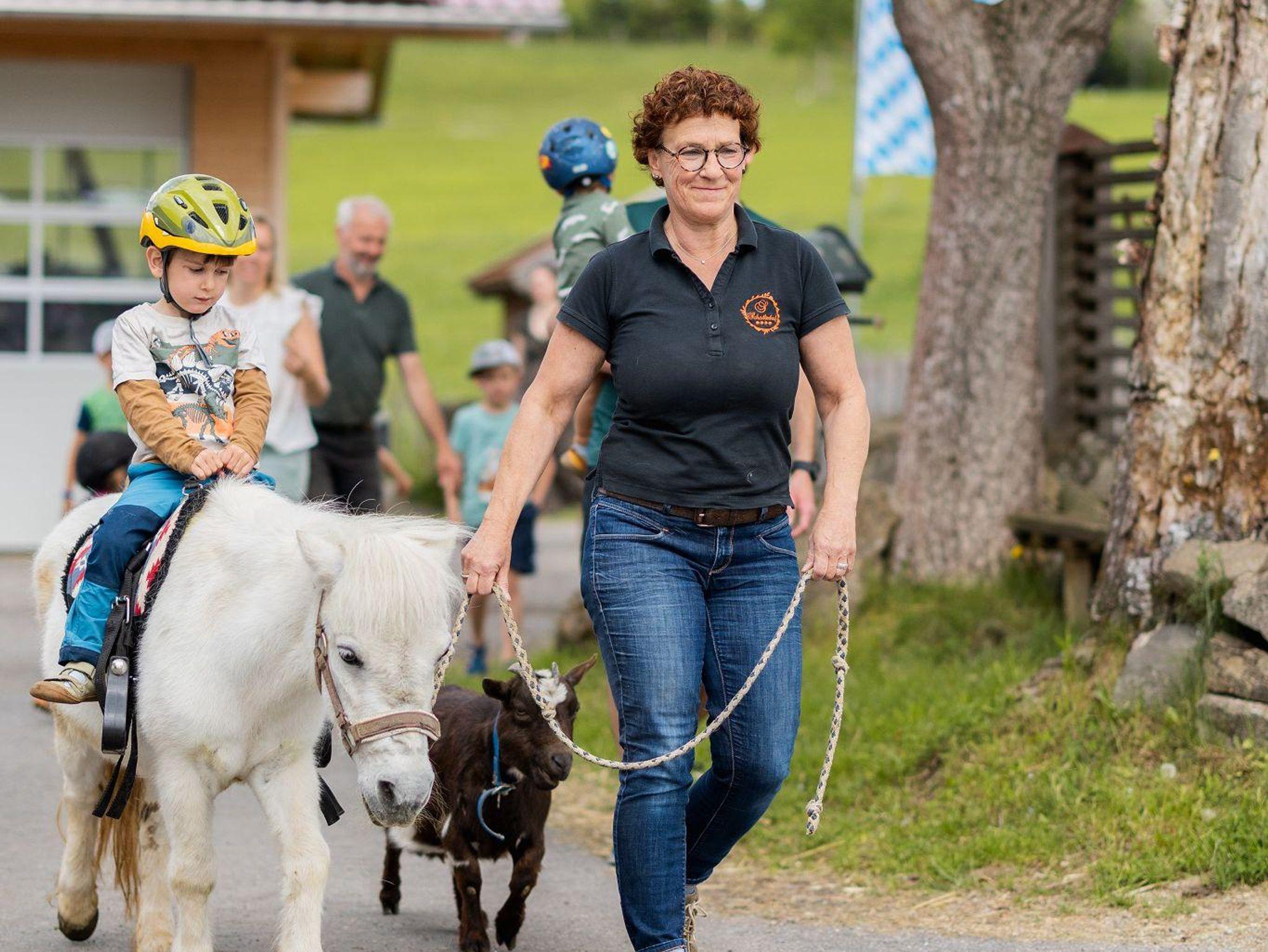 Hier dürfen Kinder noch richtig Kind sein: Ponyreiten, Pferde auf die Koppel bringen, Hasen füttern, mit Kater Fredi kuscheln. Spielplatz, Fahrzeuge, Klettergerüst und viele Tiere warten – und das Schönste ist die gemeinsame Zeit. Jeder Tag wird zum kleinen Abenteuer.