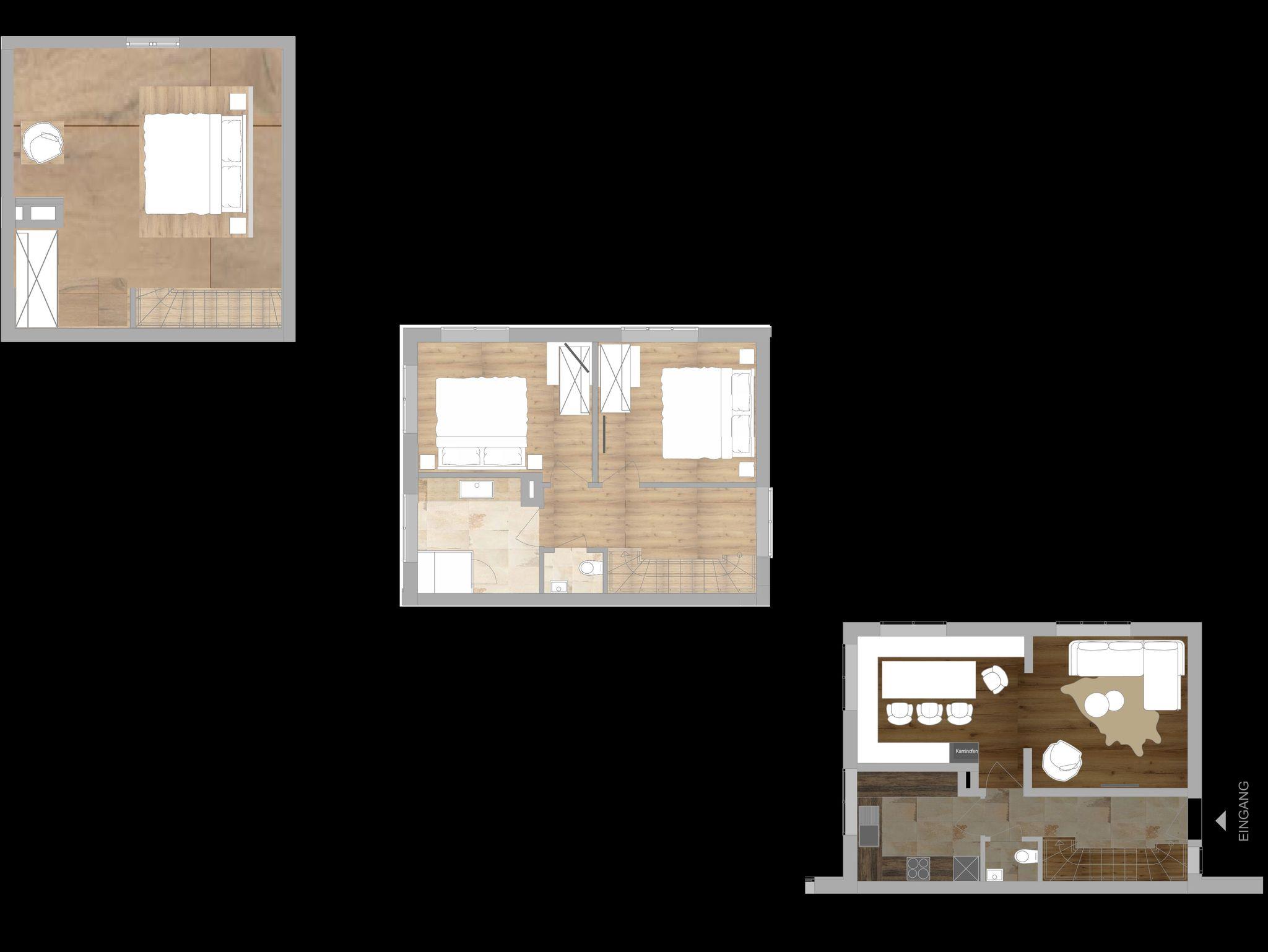 In den 3 Schlafzimmern erwartet sie je ein King-Size Doppelbett (200x200) mit wohlig weichen und bequemen Zirbelholz-Boxspringbetten, eingefasst in schickem Altholz. Bei Bedarf können Sie gerne auch Babybetten für Kinder bis maximal 3 Jahren bei uns buchen.