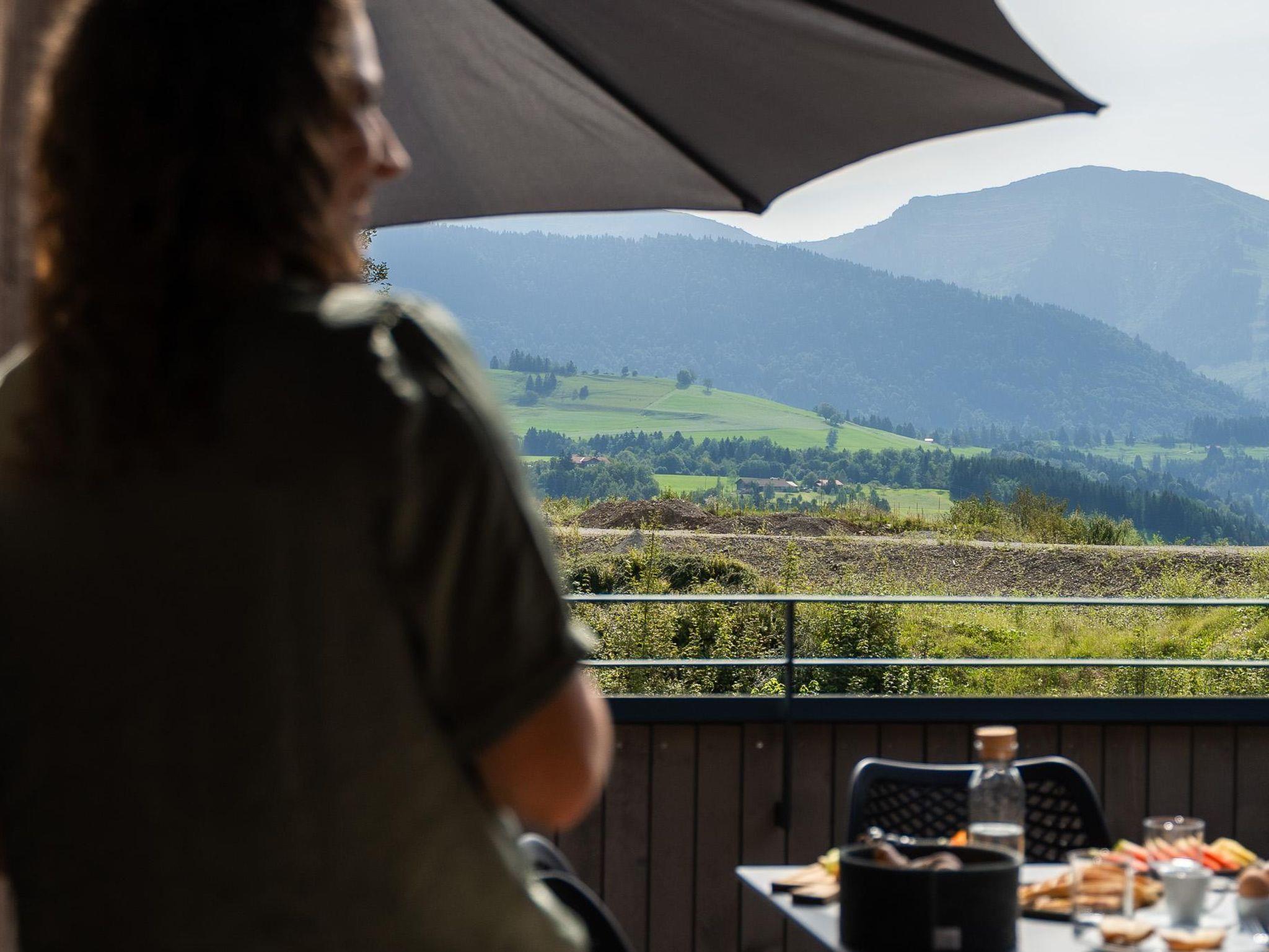 Genießen Sie die Morgensonne auf der Terrasse mit herrlicher Aussicht. Das moderne Küchenmodul ist hervorragend in den Wohnraum integriert.