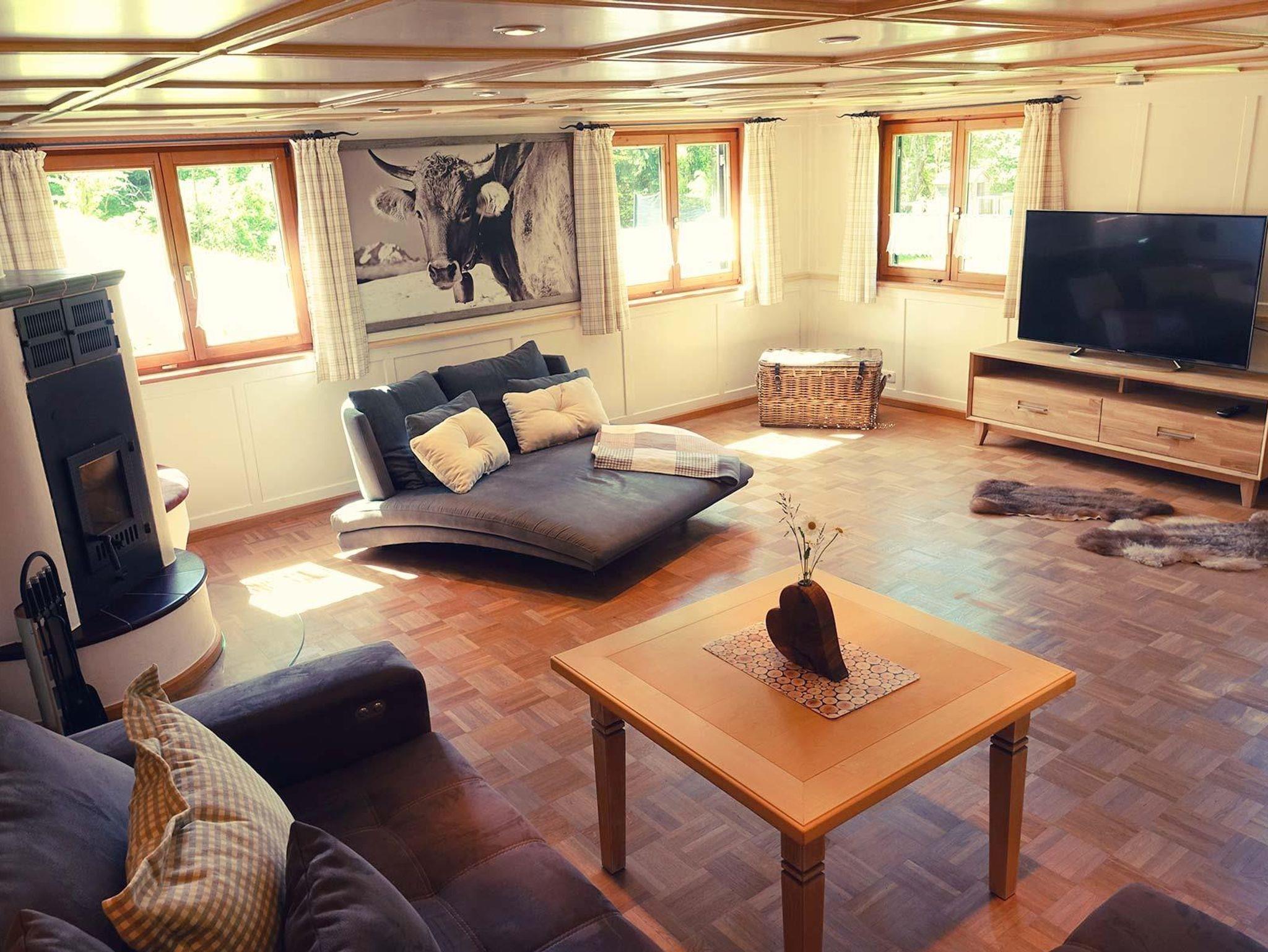 Im Sommer den Abend in entspannter Grillrunde auf der Terrasse ausklingen lassen und im Winter im Wohnzimmer vor dem Kachelofen ausspannen – das bietet unsere Ferienwohnung Juget. Im Erdgeschoß gelegen mit 99qm eignet sich die FeWo bestens für 4 Personen (Schlafsofa für 1-2 weitere Personen).