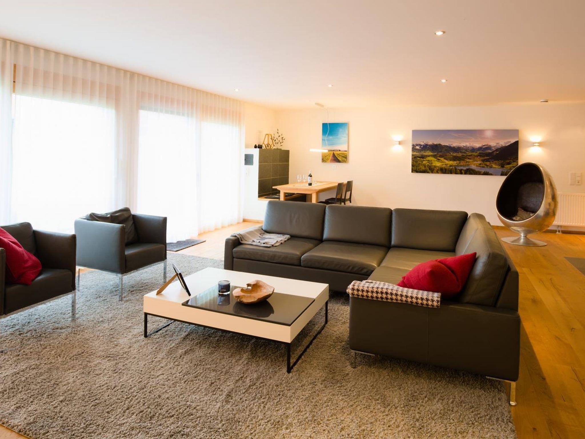 Im Winter direkt an der Loipe gelegen und nur 15 Fußminuten in den Ort. Der Skilift ist nur wenige Minuten entfernt. Kachelofen, große Dampfdusche mit Sauna „Feeling“, Bulthaup Küche und Designer Möbel bieten dir das perfekte Ambiente für einen tollen Urlaub in Oberstaufen.