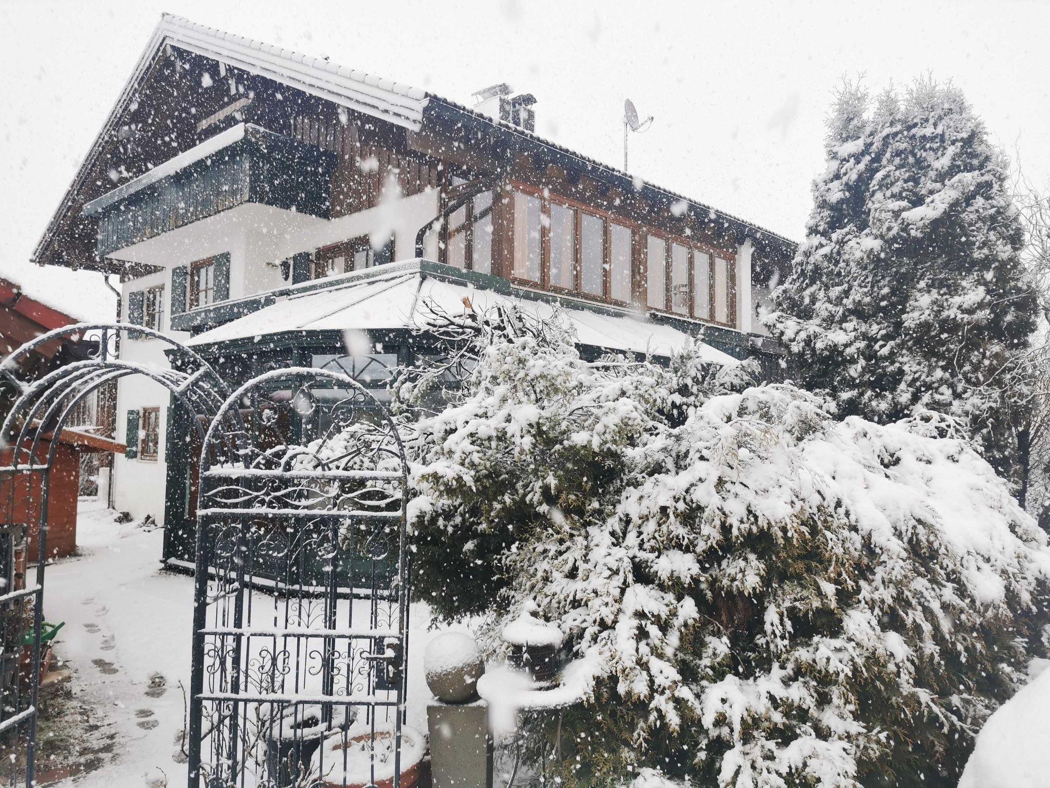 Diese wunderschöne Wohnung verfügt über 5 Zimmer mit liebevoller Ausstattung. Der große Wintergarten im Erdgeschoss hat Zugang zum Garten mit kleiner Terrasse. Angrenzend befindet sich das große Wohnzimmer mit Couchecke, Fernseher und separatem Esstisch. Die typische Landhausküche mit Kühl-Gefrierschrank, Cerankochfeld, Mikrowelle etc. hat ebenfalls eine Eckbank mit Sitzgelegenheiten und Küchentisch. Die untere Etage verfügt zudem über eine Gästetoilette. Über die Wendeltreppe oder das Treppenhaus gelangen Sie in das erste Obergeschoss mit einem zum Wintergarten ausgebauten Balkon und einem weiteren Balkon mit Bergblick sowie Badezimmer mit Dusche und Badewanne. Dort befinden sich auch Schlafzimmer mit Boxspringbett sowie ein weiteres kombiniertes Wohn-Schlafzimmer mit einem Einzelbett und einem Doppelbett und einem Zugang zum Balkon. Eine Garage mit Rolltor und Steuerung per Fernbedienung steht Ihnen ebenfalls zur Verfügung.