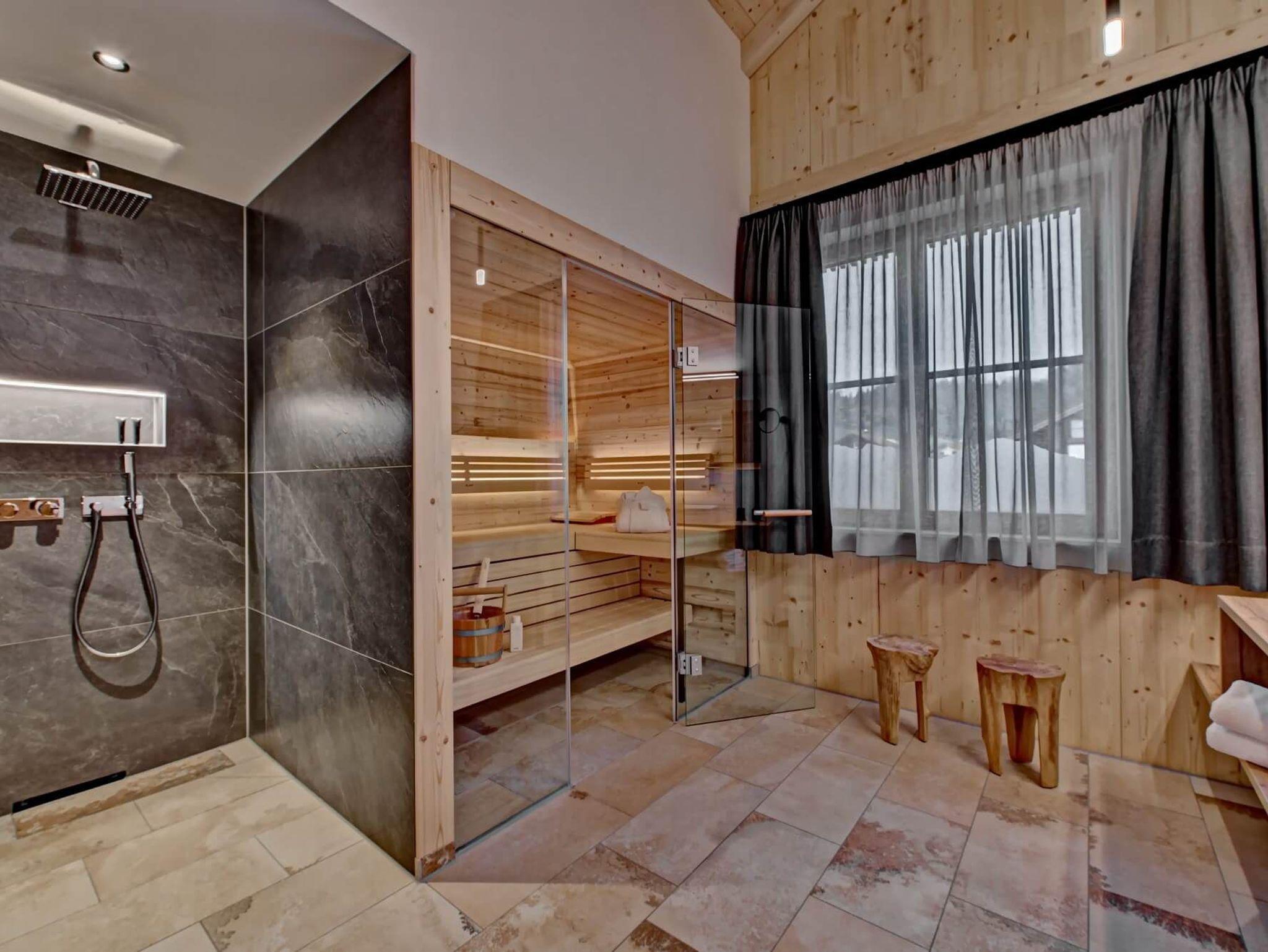 Das Chalet bietet ein großes, luxuriöses Bad mit eigener Sauna und Regendusche. Genießen Sie den Ausblick auf der Loggia, entspannen auf dem hochwertigen Ledersofa und lauschen dem Knistern des Feuers im großem Kaminofen. Unsere hochwertige Küche inklusive Ausstattung bietet alles, was Sie im Urlaub brauchen.