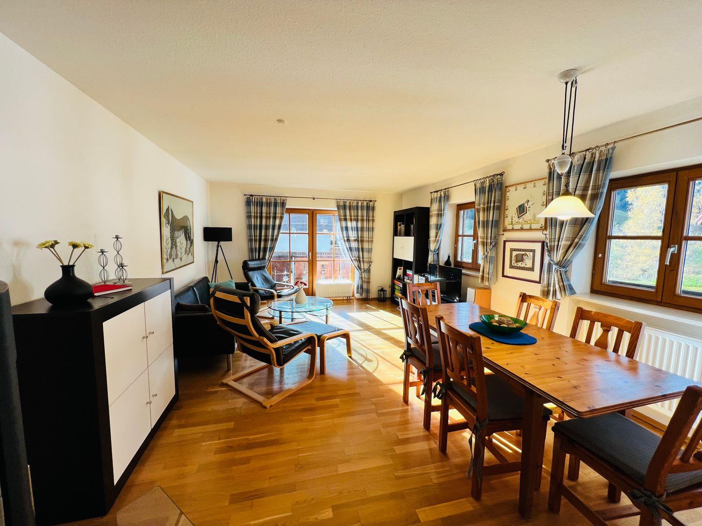 Die Traumwohnung (80m²) liegt im 1.OG eines Mehrfamilienhauses mit nur 4 Wohnungen und bietet sehr viel Privatsphäre. Die Wohnung ist gemütlich eingerichtet und verfügt über zwei Schlafzimmer, Küche, ein Wohnzimmer mit Essbereich sowie ein großes Bad und ein separates Gäste-WC. Alle Zimmer sind über einen Flur verbunden. Der großzügige Süd-Westbalkon umsäumt das lichtdurchflutete Wohnzimmer und gibt den malerischen Blick auf den Golfplatz, Hochgrat und Imberg frei. Ideal geeignet, um den Tag bei einem Glas... -was auch immer Sie bevorzugen- ausklingen zu lassen.