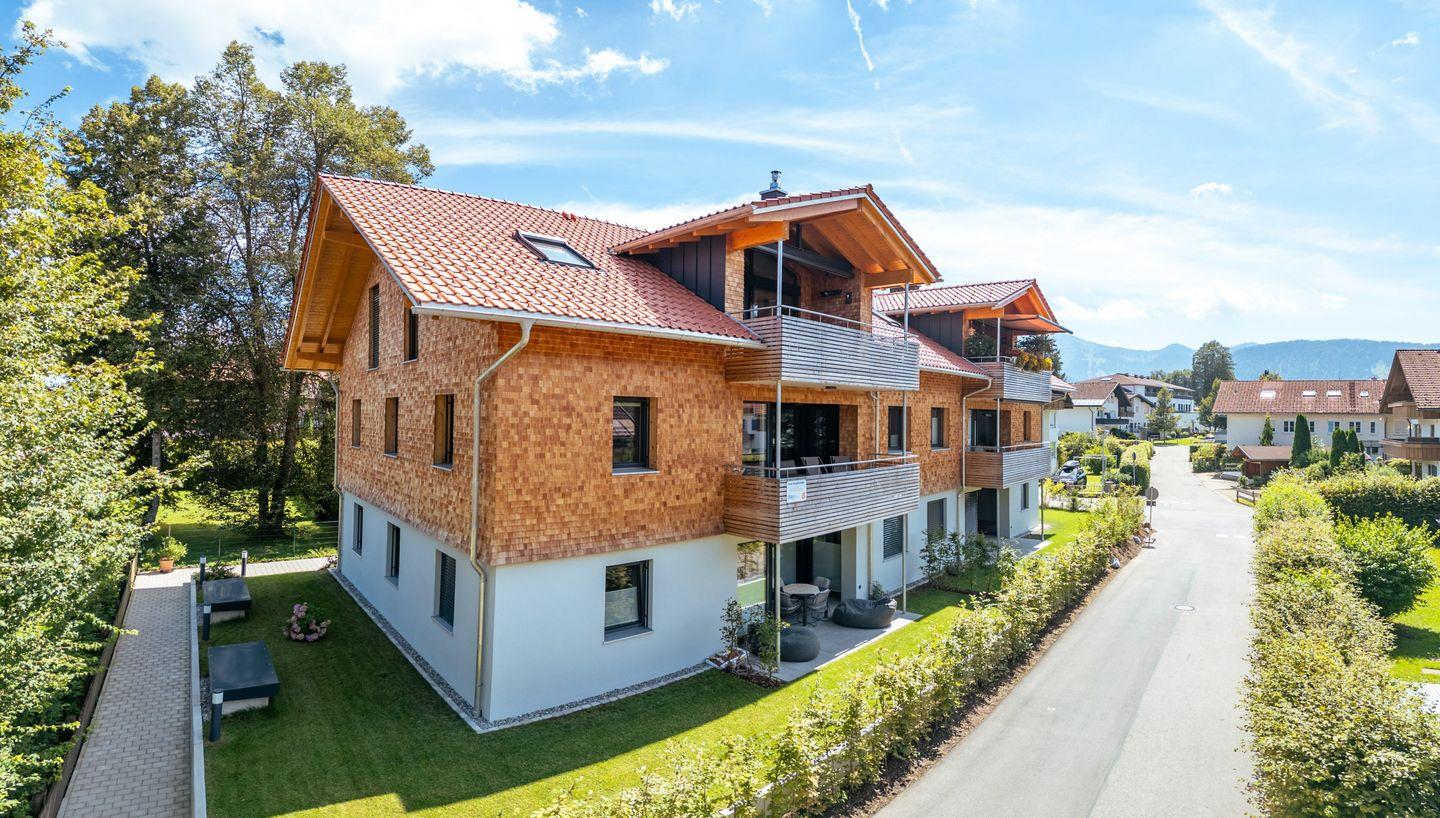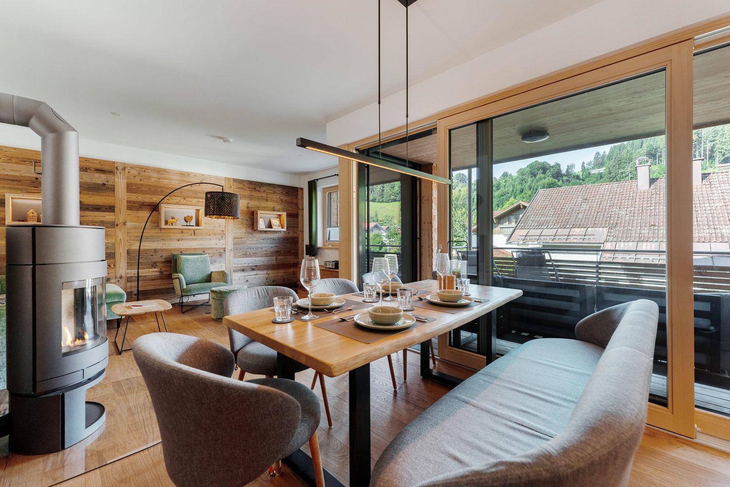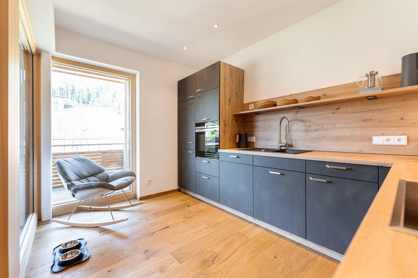 Seit Bezugsfertigkeit im Dezember 2023 erwartet Sie in unserer Ferienwohnung "Allgäuliebe", auf über 100 m² Grundfläche eine Wohnung zum Wohlfühlen mit einer exklusiven und hochwertigen Ausstattung: Echtholzparkett, Einbaumöbel und Altholzdekore vom lokalen Schreiner, sowie Boxspringbetten lassen keine Wünsche offen. Die barrierefreie Wohnung ist mit einem Aufzug im 1. Obergeschoss zu erreichen.