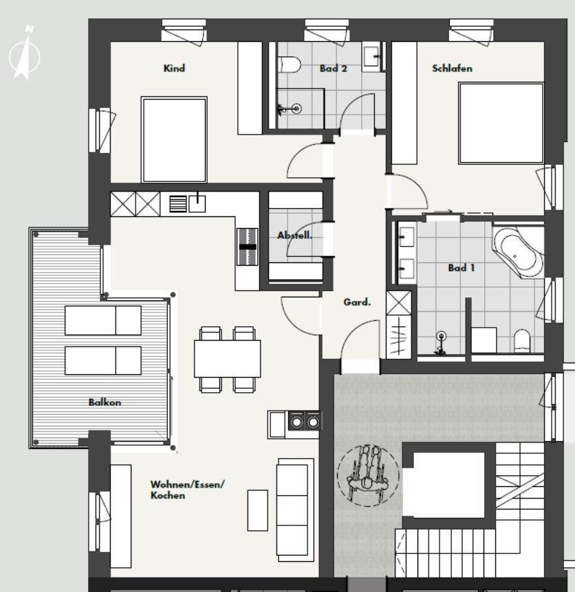 Zur Wohnung gehört ein extrabreiter Tiefgaragenplatz mit einer Höhe von 2,05 m mit Wallbox für E-Autos (Aufpreis). Fahrräder, Ski- und Golfausrüstung können bequem im Keller abgestellt werden. Bettwäsche und Handtücher können für 25,00 € pro Person zugebucht werden.