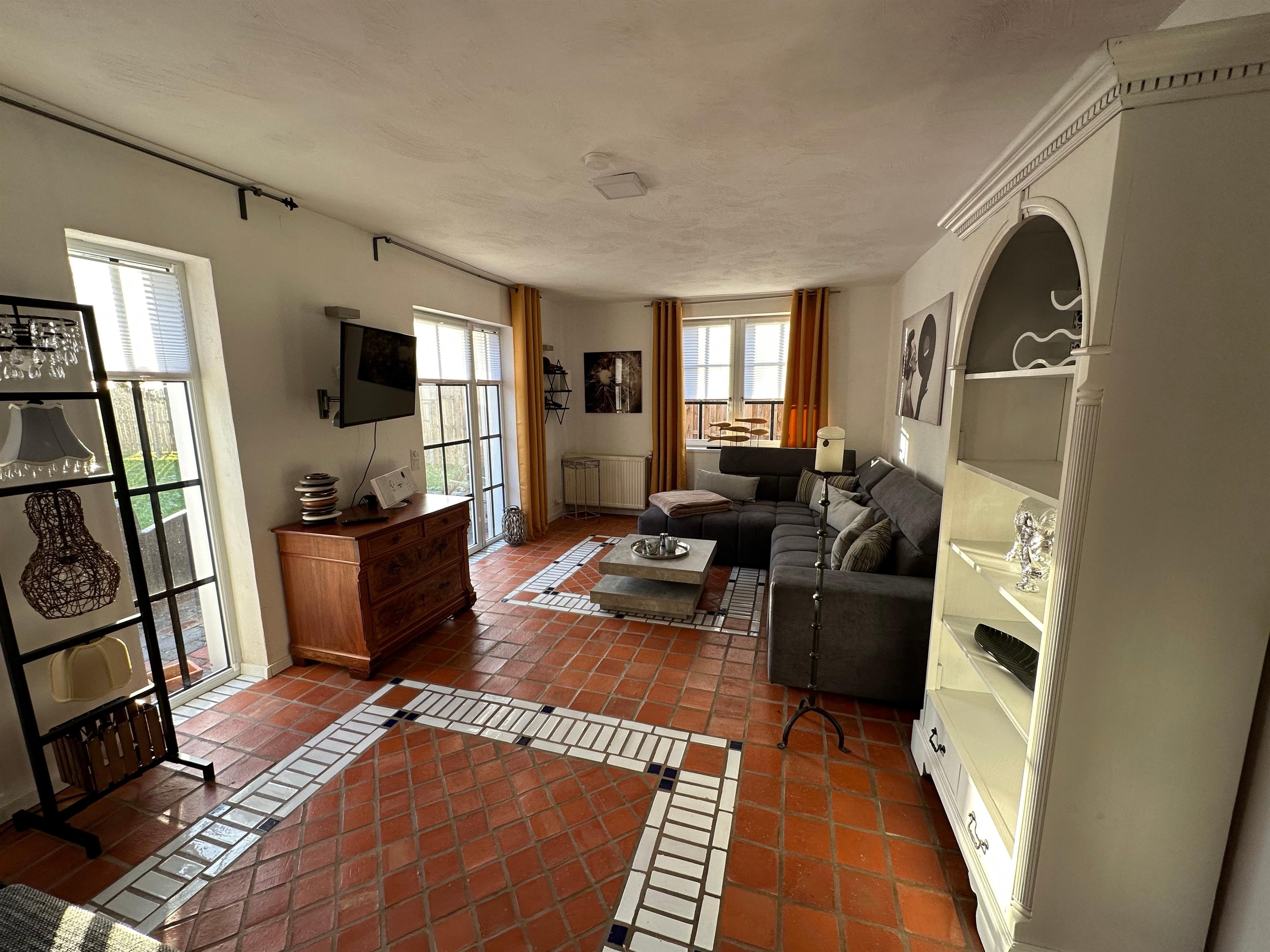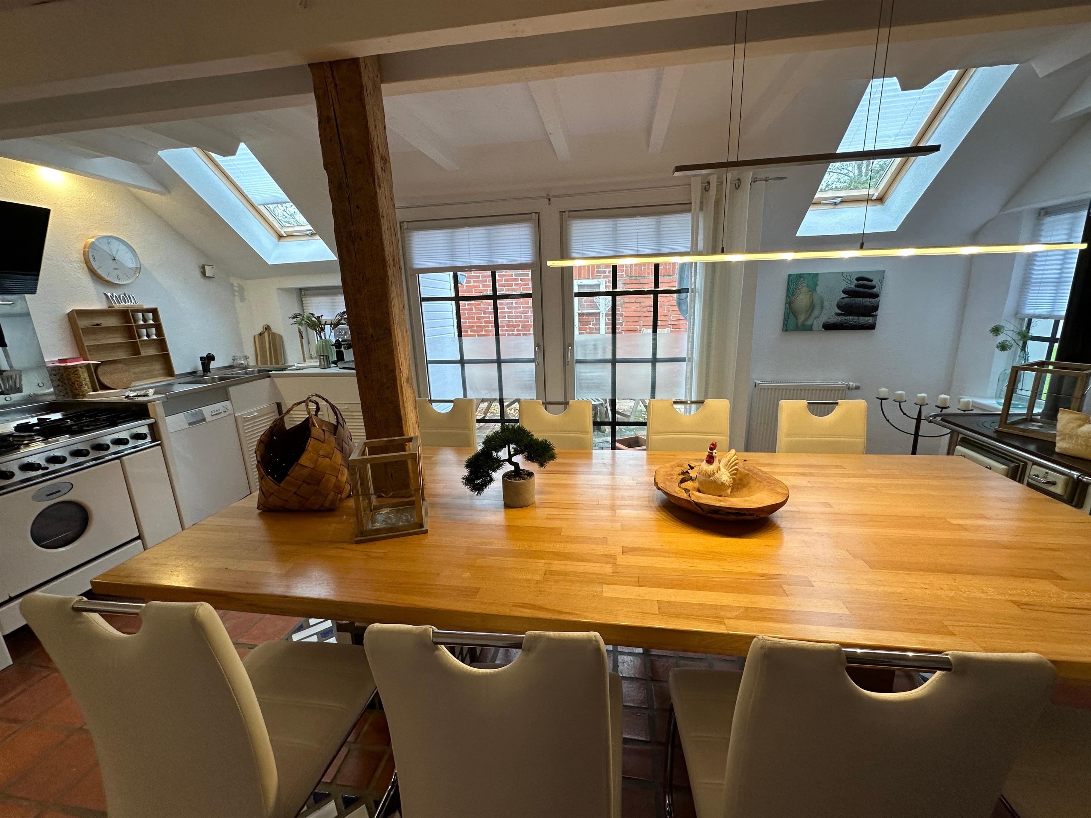 Entdecken Sie unser in 2022 renoviertes Juwel, die Erdgeschossferienwohnung "Huus an`t Koornfeld", gelegen in der idyllischen Kleinstadt Osteel. Umgeben von malerischen Feldern und Wiesen, in einer ruhigen Siedlung, bietet diese Unterkunft den perfekten Rückzugsort für alle, die Sehnsucht nach Natur, Ruhe und Erholung haben. Mit ihrer erstklassigen Lage ist die Ferienwohnung der ideale Ausgangspunkt für wunderschöne Wanderungen und Fahrradtouren durch die landschaftlich reizvolle Umgebung. Das Interieur der Ferienwohnung überzeugt durch seine Großzügigkeit, Helligkeit und Sonnigkeit. Kürzlich einer umfassenden Renovierung unterzogen, erwarten die Gäste hohe Wohnstandards: von handgemachten Tonfliesen aus Marokko bis zu einer voll ausgestatteten Küche mit modernen Annehmlichkeiten wie einem neuen Kühlschrank mit Gefrierfach, einem Gasherd mit Backofen sowie einer Spülmaschine. Für optimalen Komfort sorgen zudem eine große Couchgarnitur mit Schlaffunktion, zusätzliches Schlafsofa und Sat-TV in Küche, Wohnzimmer und Schlafzimmer, während das kostenlose W-LAN eine problemlose Verbindung zur Außenwelt sicherstellt. Im äußeren Bereich der Ferienwohnung lädt der weitläufige Garten mit seinem gepflegten Rasen, einer Terrasse inklusive Strandkorb, Sitzmöbeln und einem Holzkohlegrill zum Verweilen und Genießen ein. Eine zwischen zwei alten Birken aufgespannte Hängematte bietet direkten Blick auf das angrenzende Kornfeld - ein idealer Ort zum Entspannen und Träumen unter freiem Himmel. Die Außenmöbel, eine Tischgruppe mit 4 Stühlen und eine Lounge Garnitur, vervollständigen das Bild eines perfekten Außenbereichs. Die Umgebung der Ferienwohnung ist geprägt durch die unverfälschte Schönheit der norddeutschen Landschaft - ein Paradies für Naturfreunde und Ruhesuchende. Neben den direkten Zugängen zu atemberaubenden Wander- und Radwegen laden die nahegelegenen malerischen Ortschaften Greetsiel und Norddeich, die nur wenige Kilometer entfernt sind, zu Erkundungstouren ein. Ob Sie die Küste entlangfahren oder die ländliche Gegend erkunden möchten – die Lage bietet die ideale Kombination aus ländlicher Ruhe und der Nähe zu attraktiven Ausflugszielen. Wir laden Sie herzlich ein, in unserer traumhaften Ferienwohnung "Huus an`t Koornfeld" abzuschalten, die Seele baumeln zu lassen und die einzigartige Verbindung von Komfort, Natur und norddeutscher Gastfreundlichkeit zu erleben. Gönnen Sie sich diese Auszeit – ein Ort, an dem Erholung und Naturerlebnis zu einer unvergesslichen Erfahrung werden.