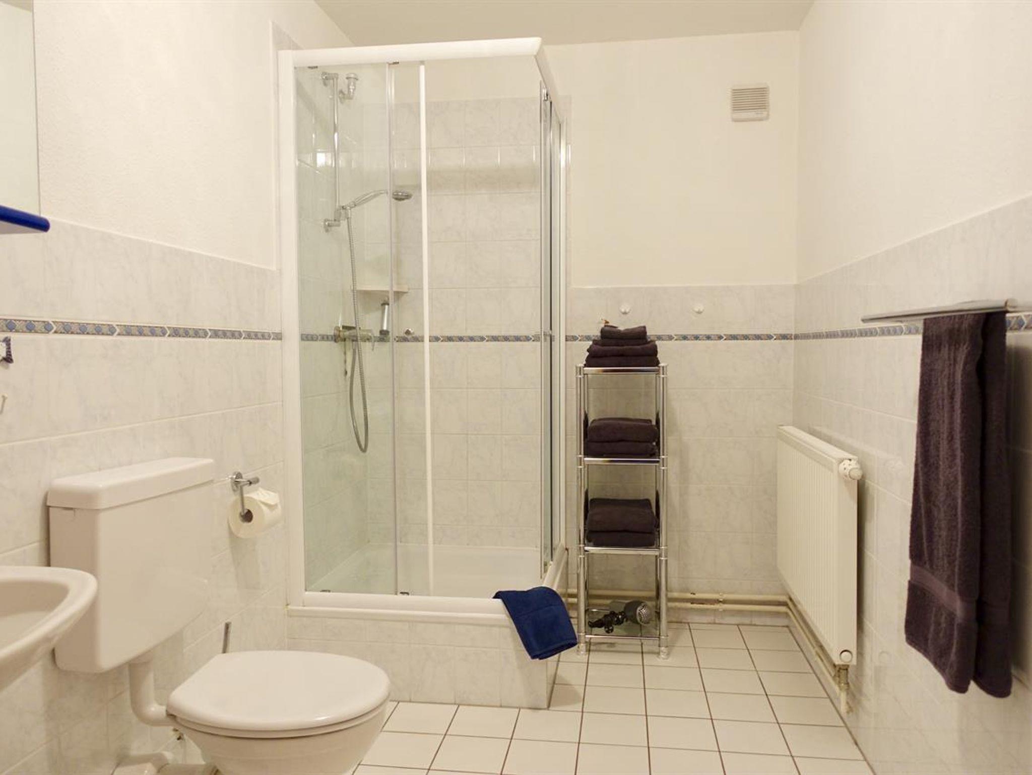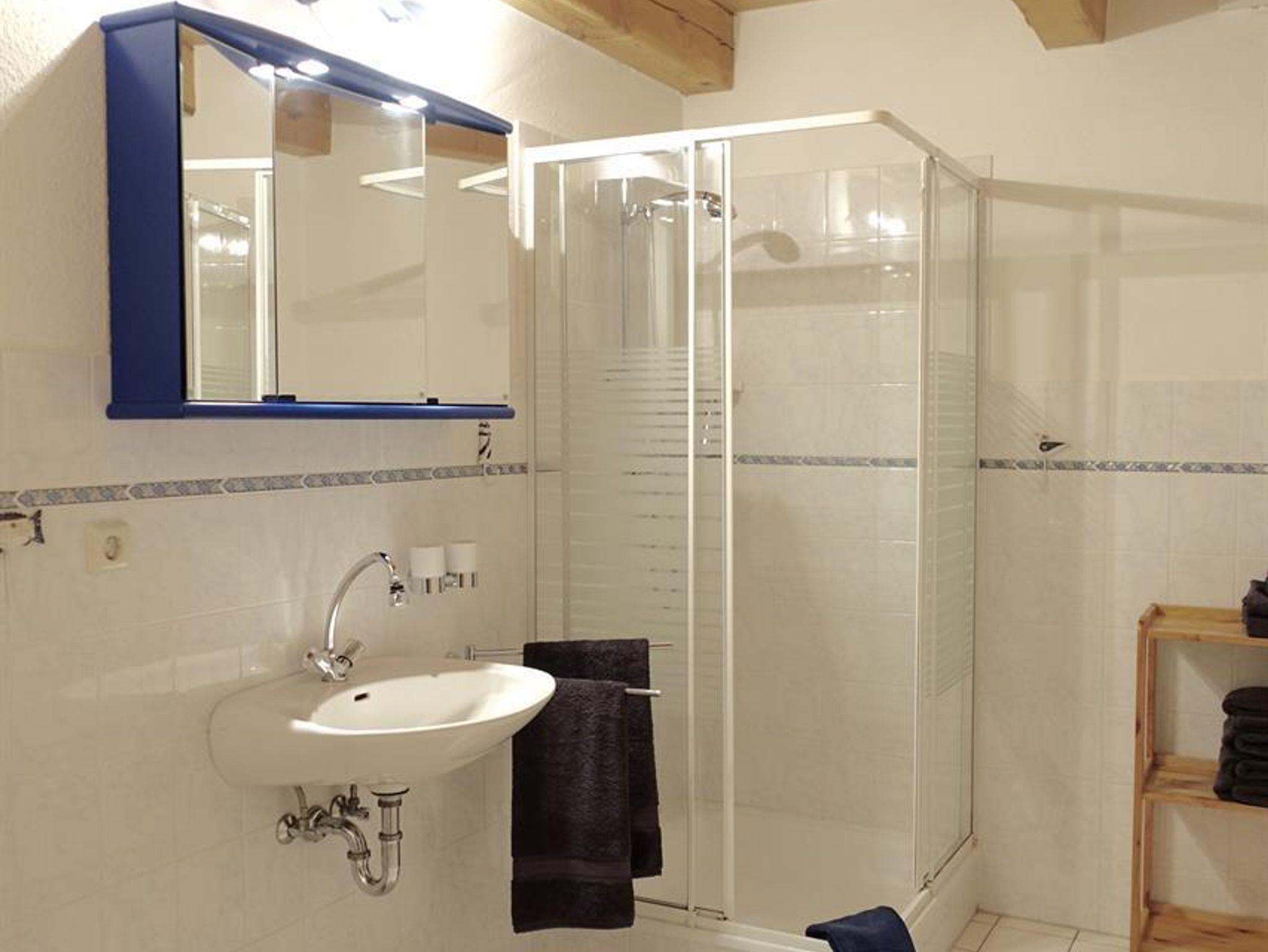 Ebenfalls im Obergeschoss befindet sich das zweite Badezimmer mit Dusche und WC.