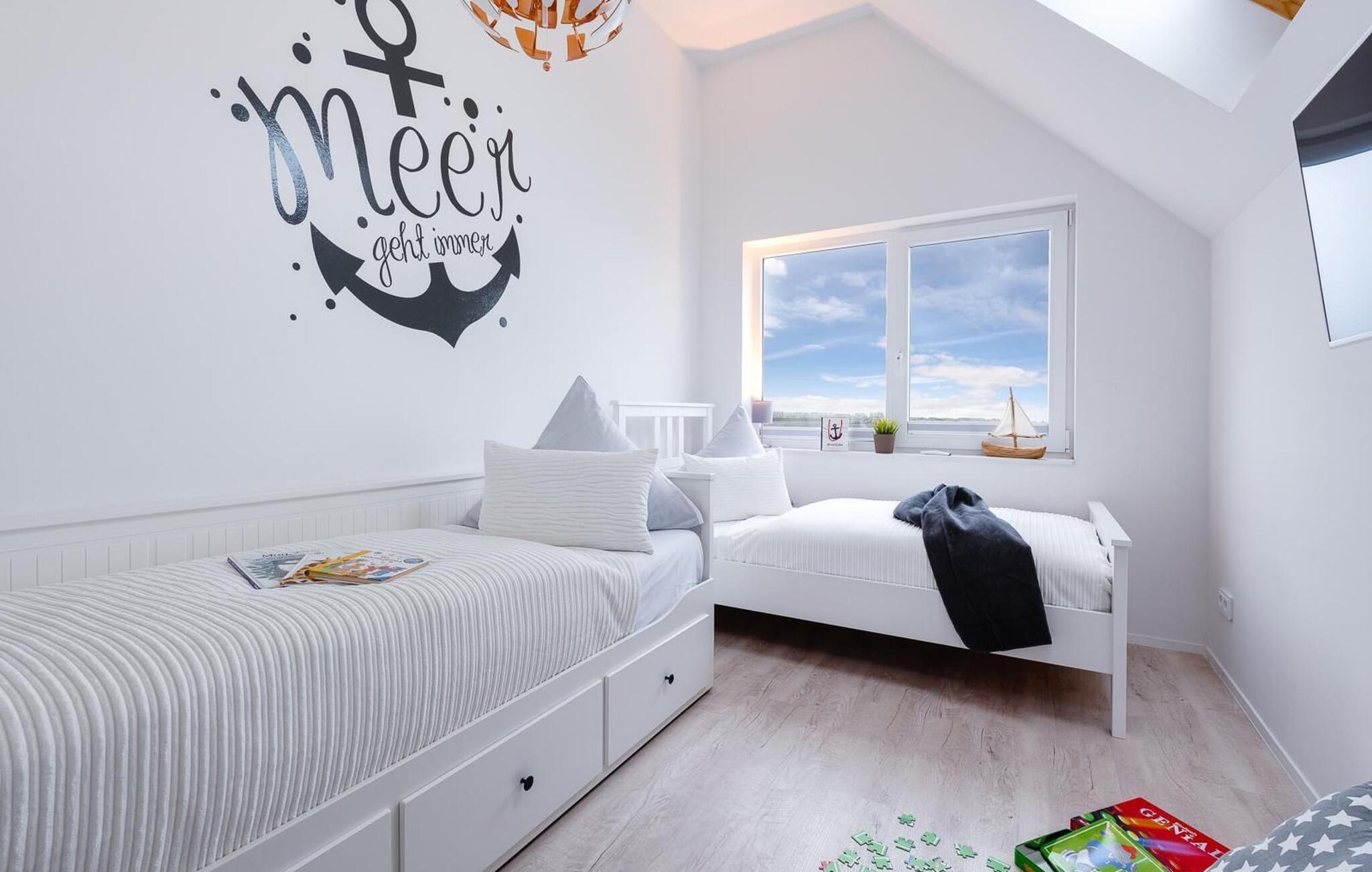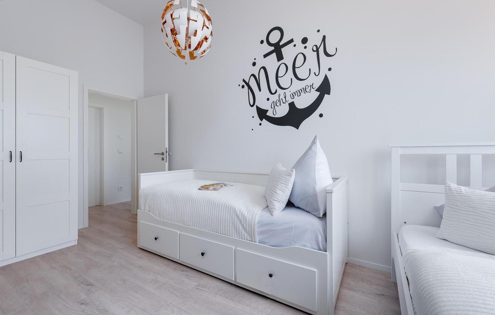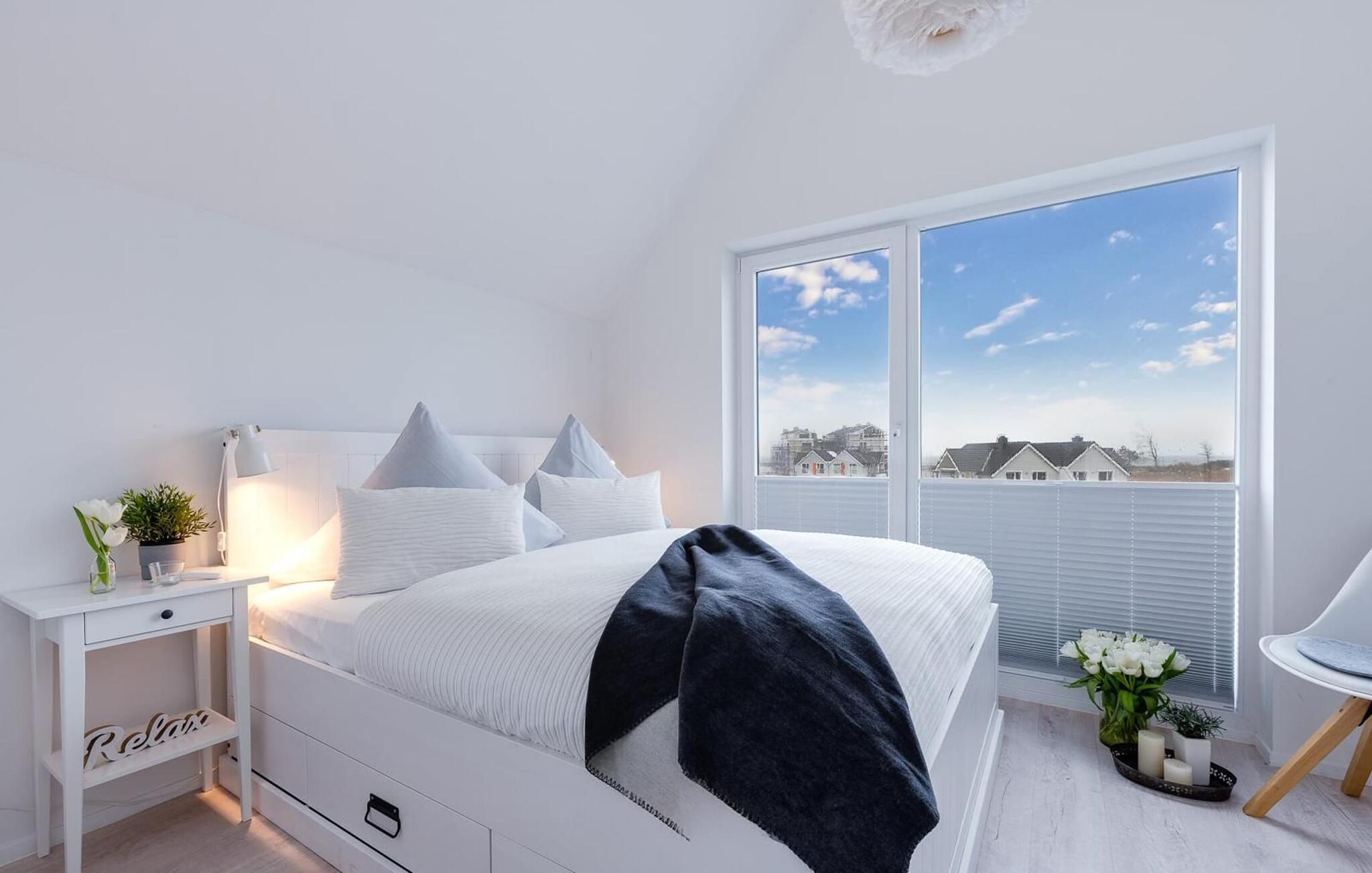 Ferieleiligheten Ostsee Anker ligger bare noen få meter fra Weidefelds sandstrand og havnepromenaden, og kan skilte med sentral beliggenhet, fantastisk utsikt over vannet og topp innredning. Du kan nyte morgen- og kveldssolen på to terrasser.