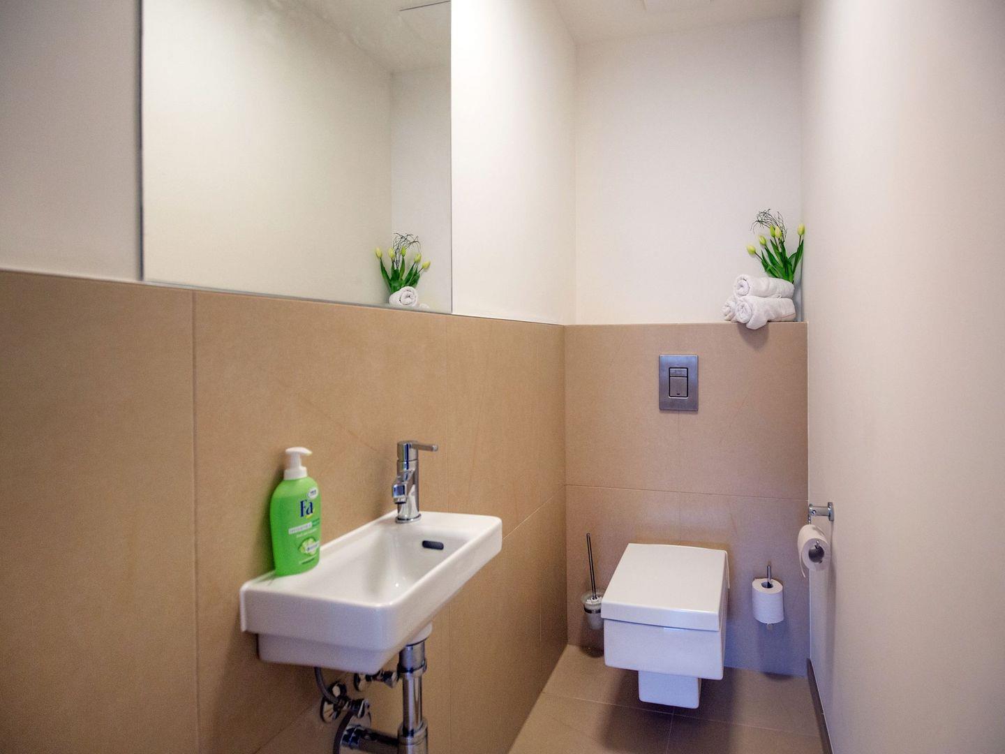 Dieses hochwertig eingerichtete Ferienwohnung mit privatem Balkon mit Seeblick besteht aus einem großen Wohnraum mit Küche und Essbereich sowie zwei separaten Schlafzimmern. Die Küchenzeile ist eingerichtet und überzeugt mit einem Kochfeld, einem Backofen, einem Geschirrspüler, einem Wasserkocher, einer Nespresso - Kaffeemaschine und einem Toaster. Im Wohnzimmer, wie auch in einem der beiden Schlafzimmer stehen LCD-TV. Beide Schlafzimmer liegen separat und sind einmal mit einem Doppelbett und einmal mit zwei Einzelbett ausgestattet. Das Badezimmer überzeugt mit einer Badewanne, einem Waschbecken, einem WC und einem großen Spiegel. Zusätzlich gibt es ein Gäste-WC. In der Zeit von Mai bis September ist ein eigener Strandkorb inklusive