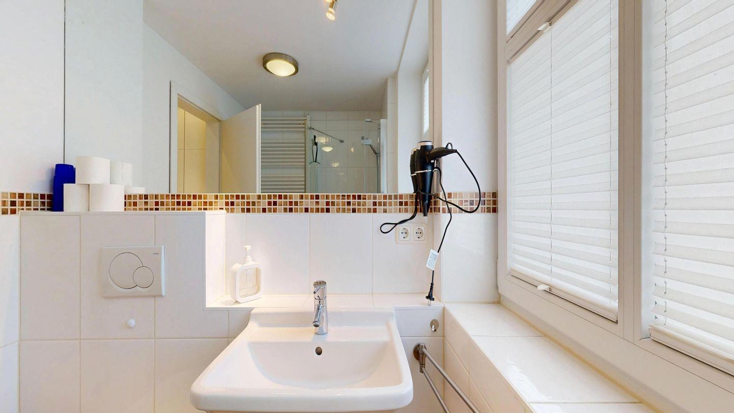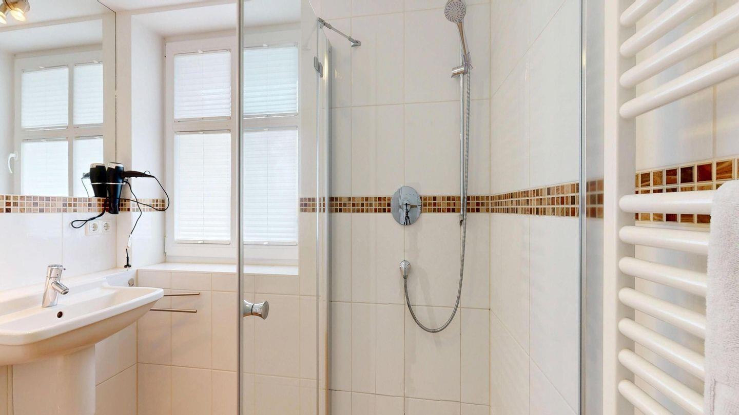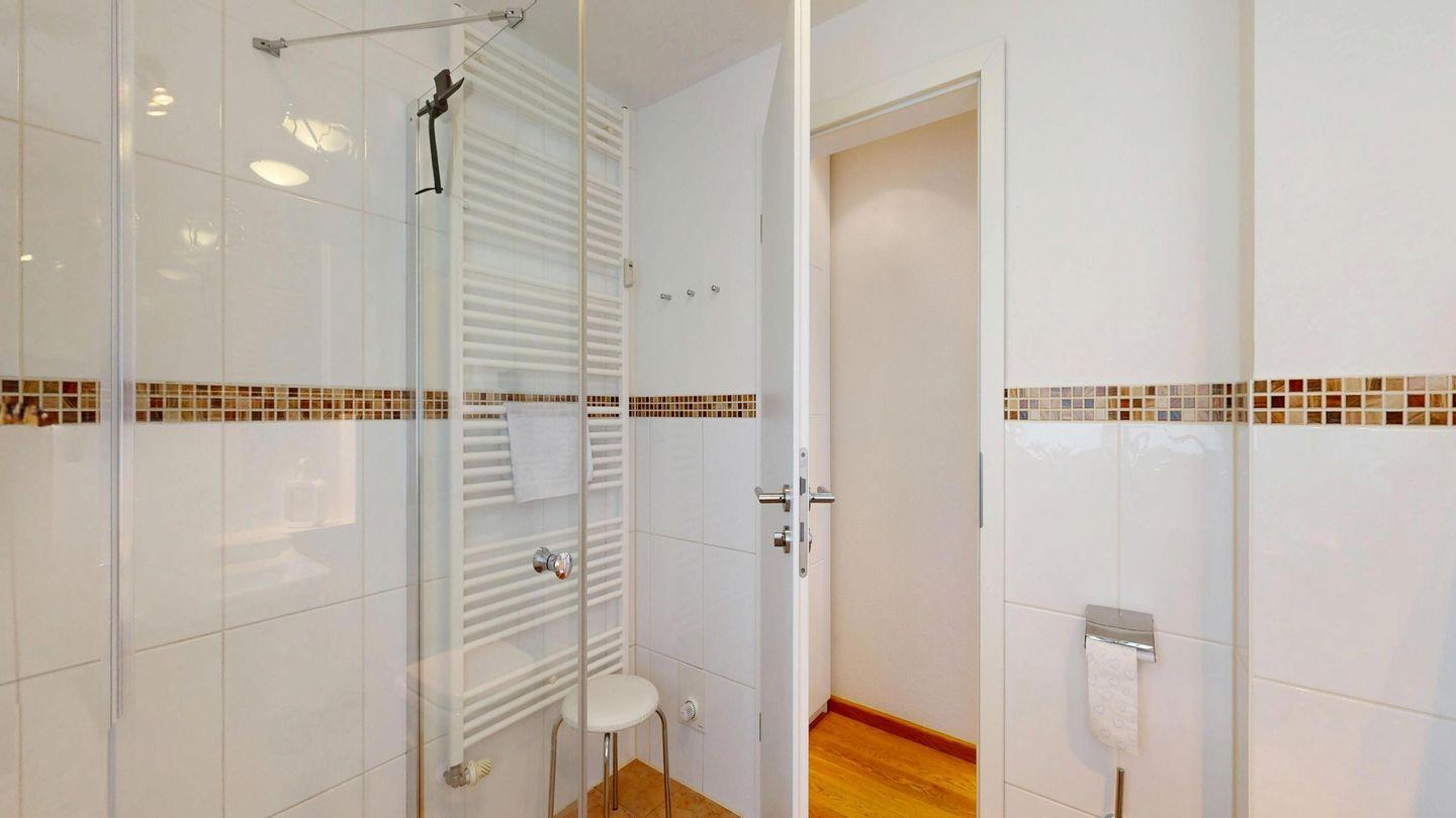 * 1 Badezimmer mit Dusche, WC, Fußbodenheizung und Föhn
