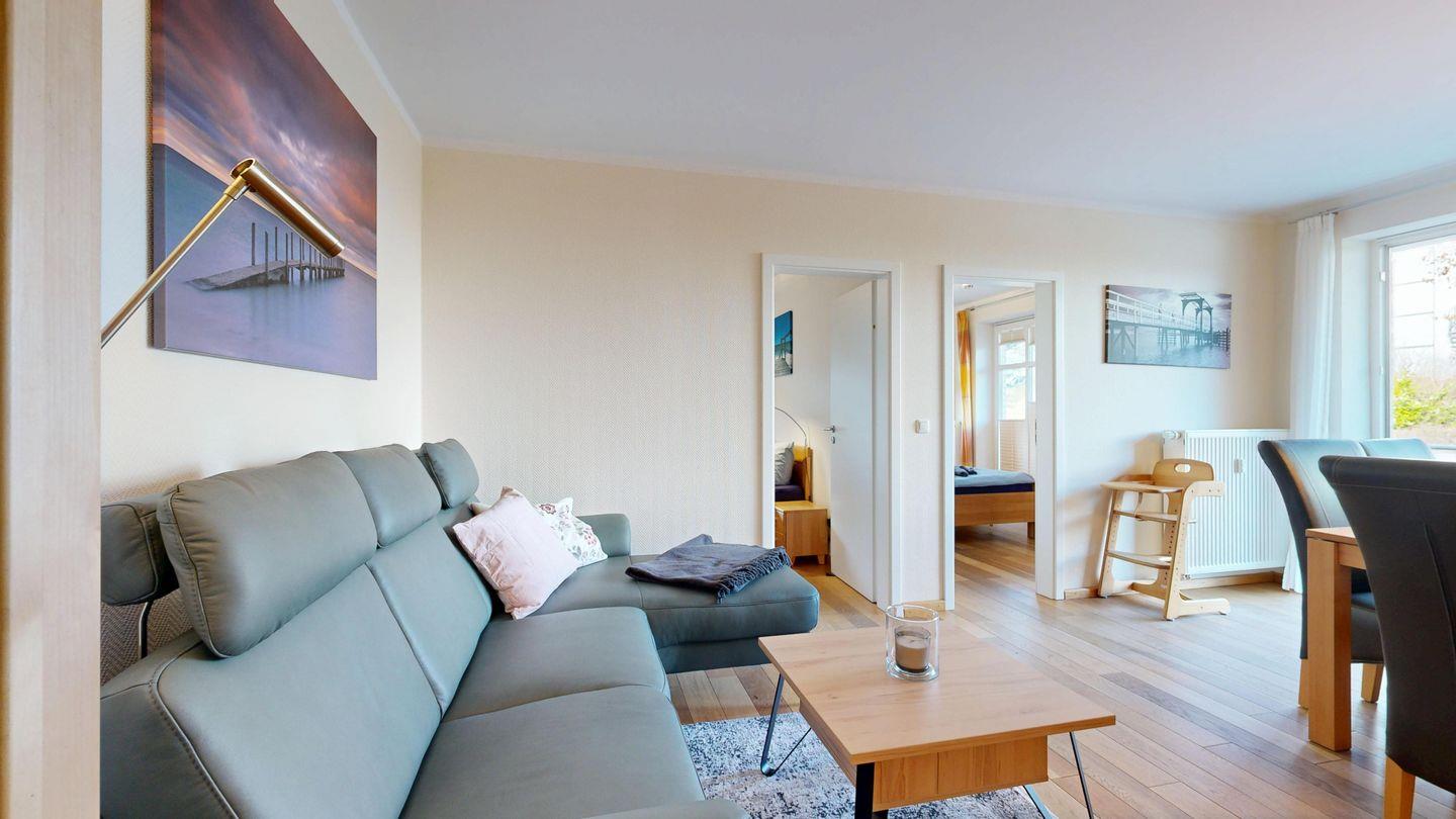 Hochwertig und strandnah: Diese großzügige Ferienwohnung mit zwei Schlafzimmern bietet den perfekten Rahmen für Ihren Ostseeurlaub. Der eigene Strandkorb am Strand macht Ihren Aufenthalt zu etwas ganz Besonderem.