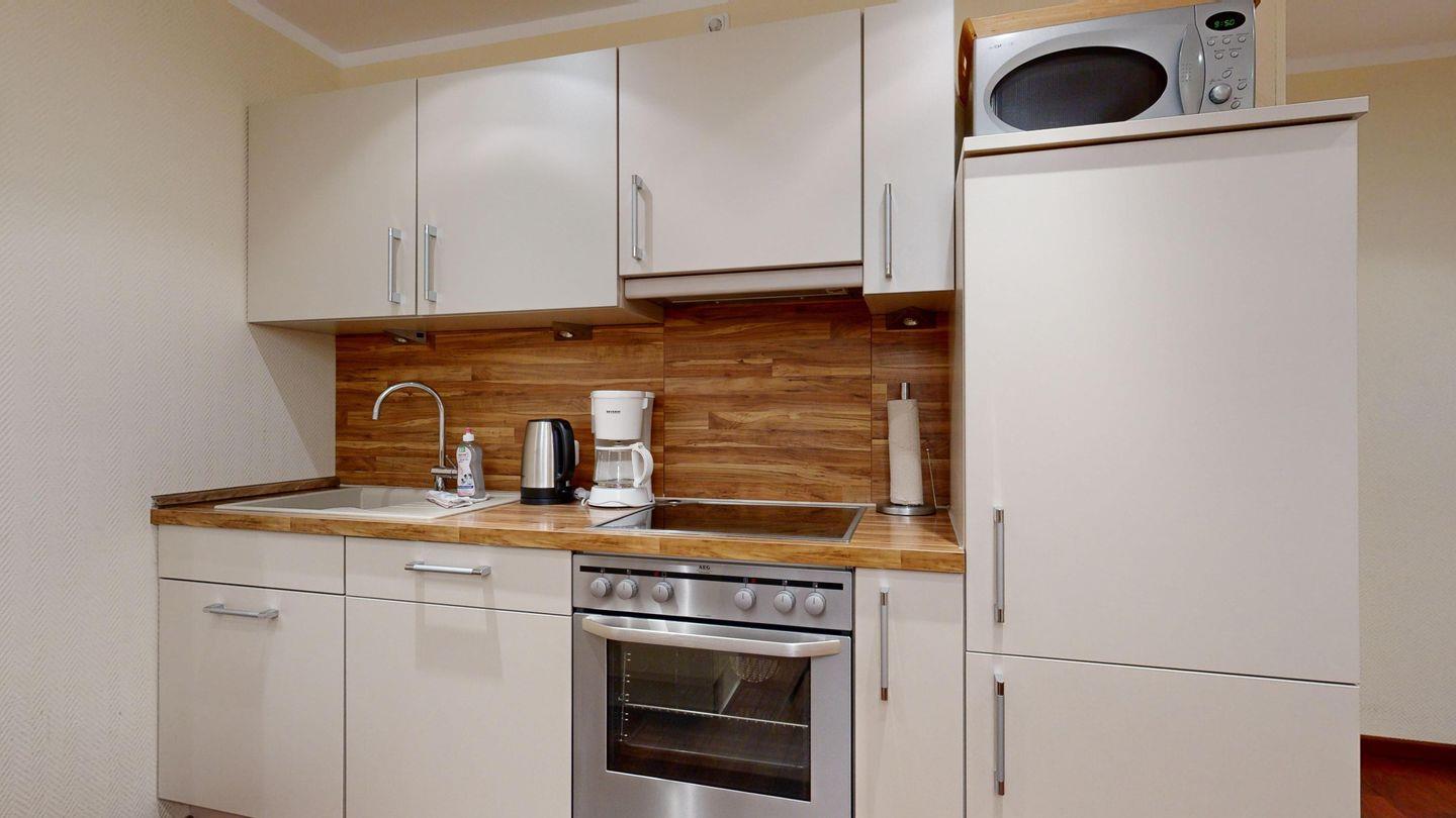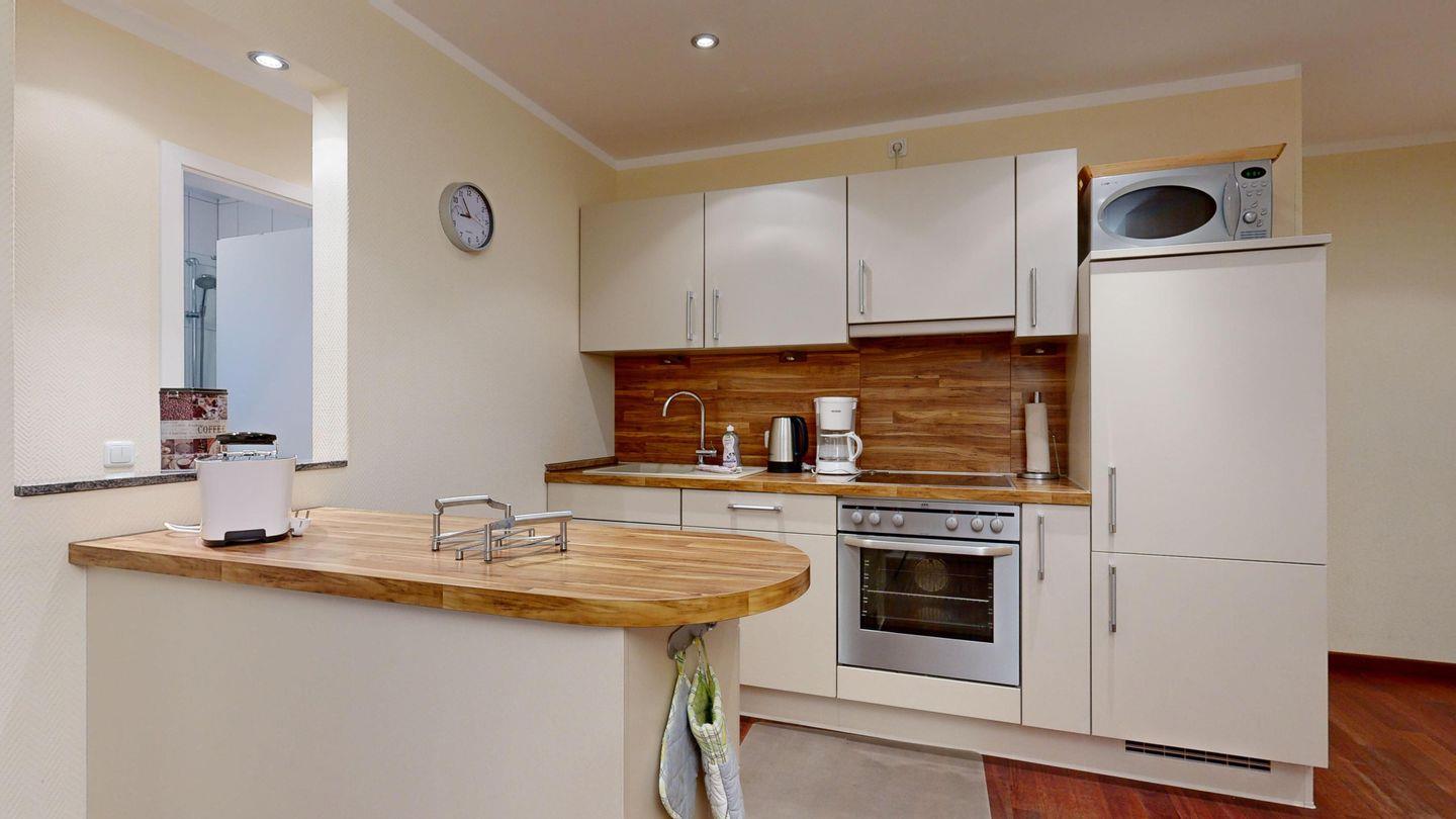* Küche: Moderne Küchenzeile, E-Herd mit Backofen, Spülmaschine, Mikrowelle, Wasserkocher, Kaffeemaschine, Toaster
