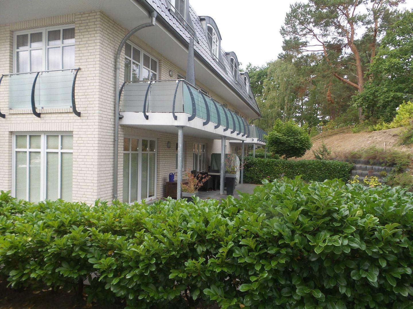 Ferienwohnung mit Terrasse und kleinem Garten. Strandkorb am Strand inklusive.
