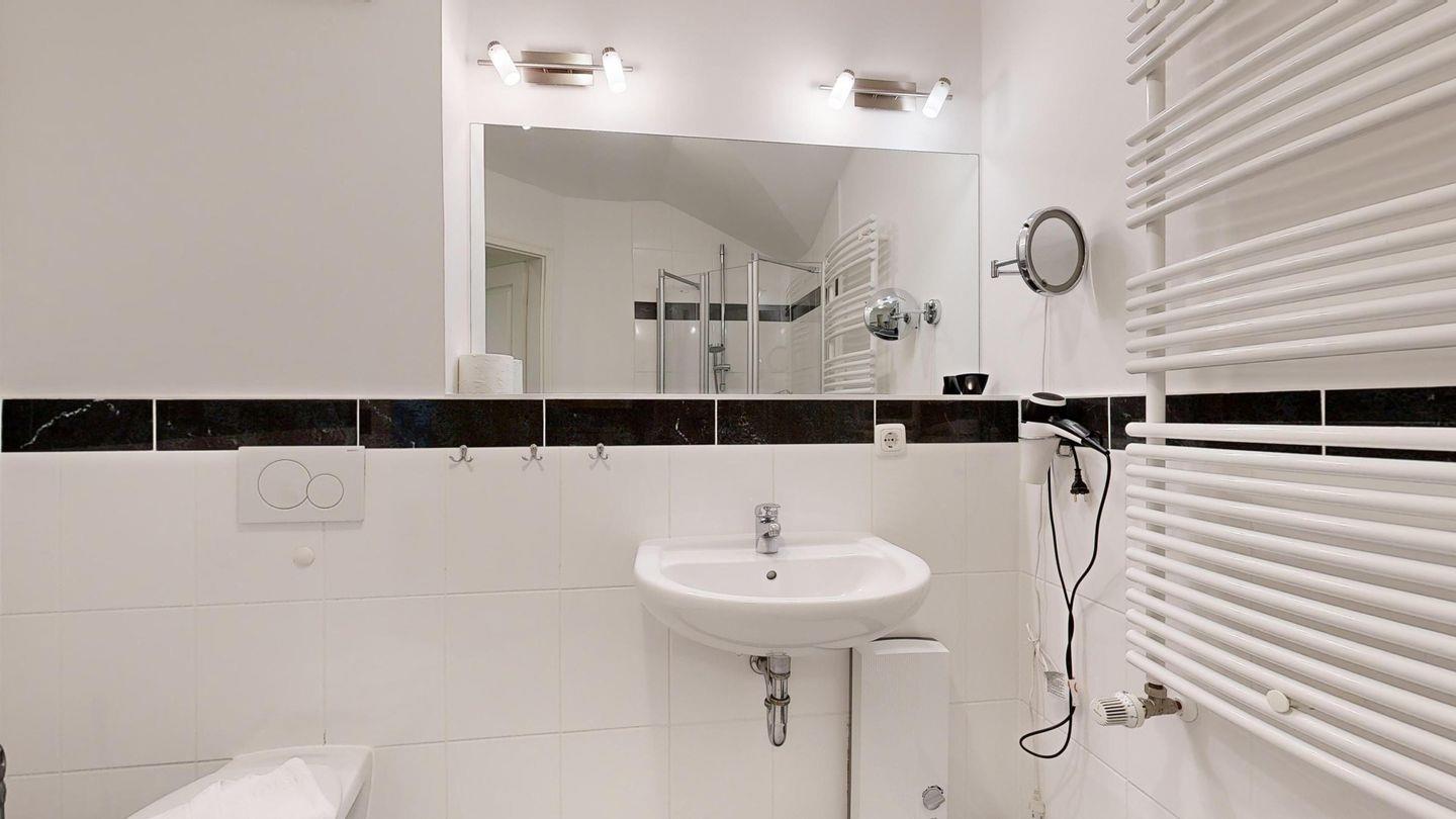 * Badezimmer mit Dusche, WC und Föhn
