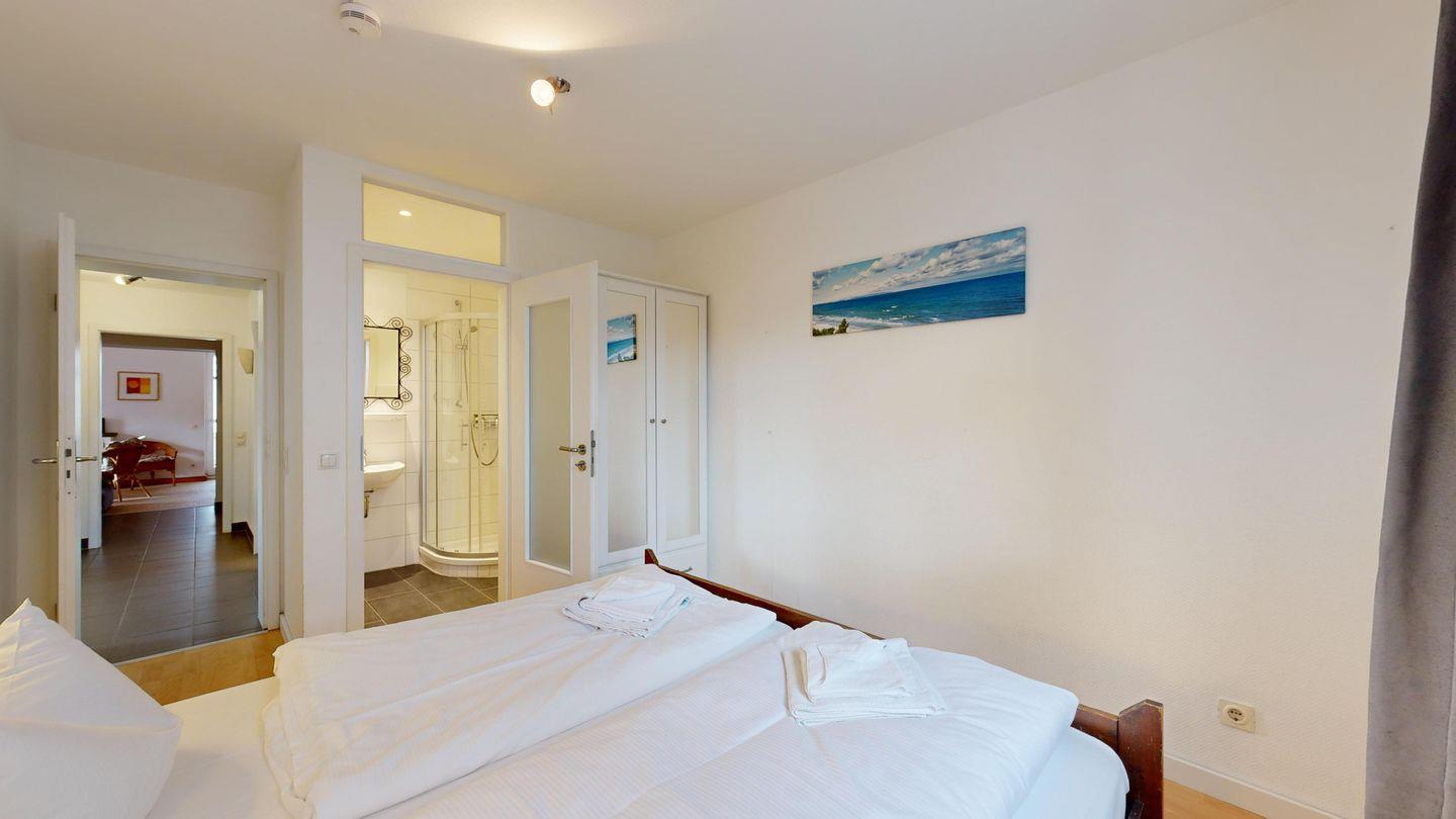 * 1 Schlafzimmer mit einem Doppelbett mit 2 Matratzen (je 90 x 200 cm) und ein Bad en suite mit Dusche und WC