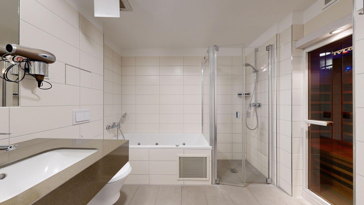 Infrarot-Sauna, Whirlpoolbadewanne, Föhn
