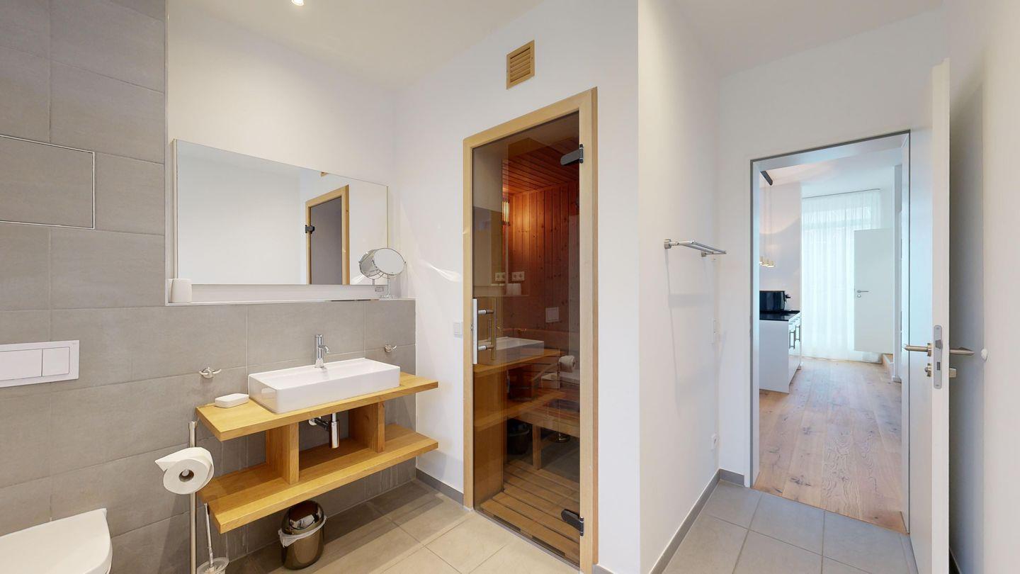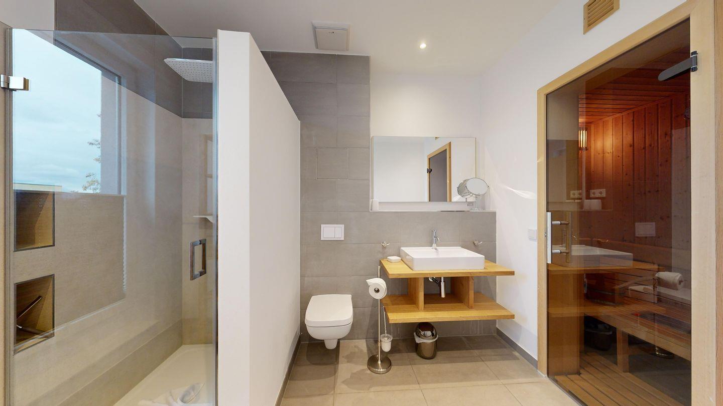 * 1 Badezimmer mit Dusche, Sauna, WC, Föhn