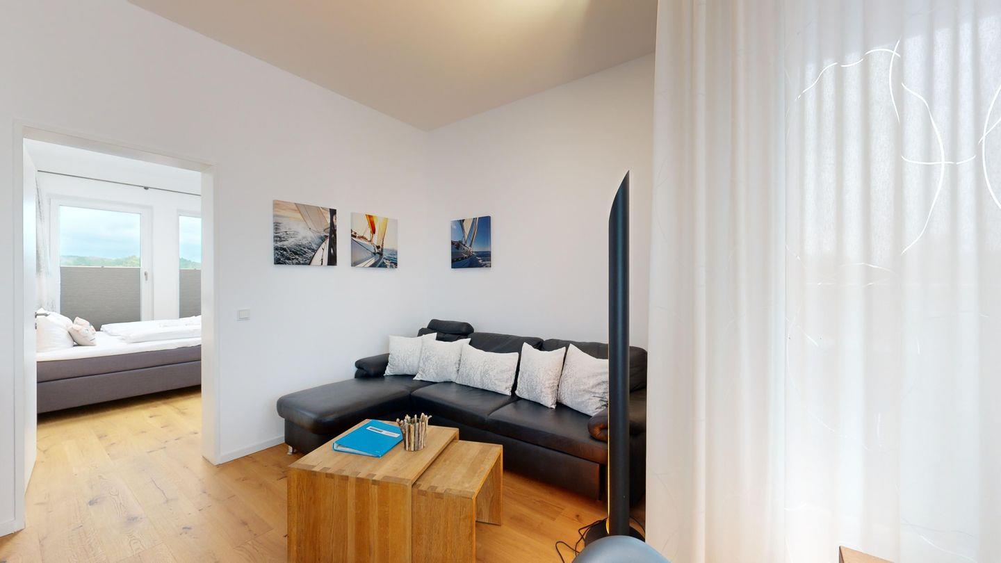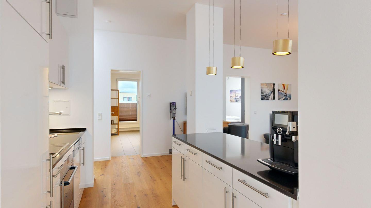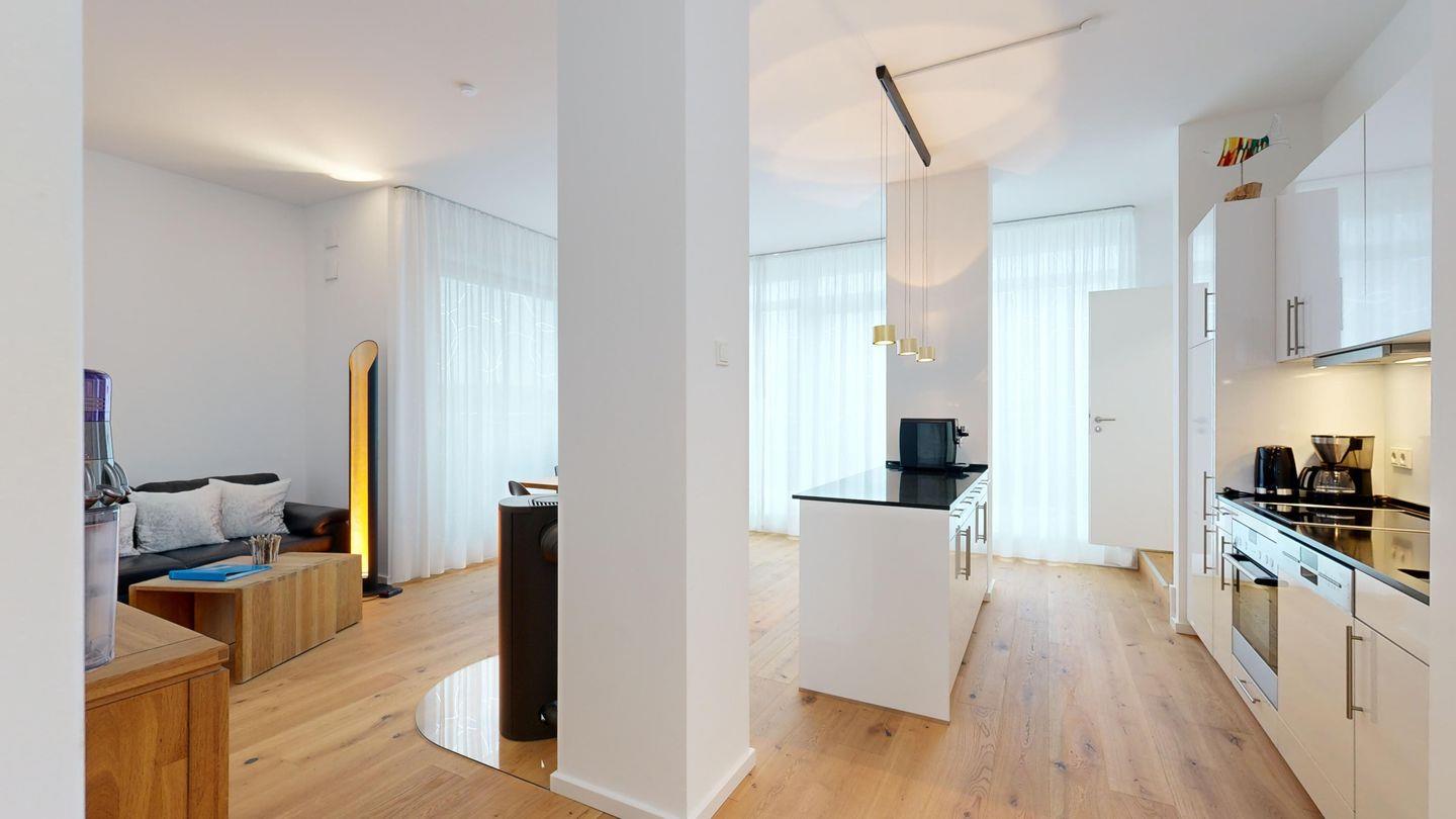 Exklusives Urlaubsgefühl im Loft-Stil: Großzügige, offene Räume, eine private Sauna in der Wohnung und ein gemütlicher Kamin sorgen für luxuriöse Wohlfühlmomente. Auf dem sonnigen Südbalkon genießen Sie den ganzen Tag über Wärme und Meerluft – perfekt für stilbewusste Genießer.