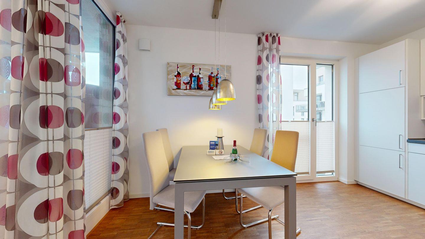 Modern, gemütlich und mit allem Komfort: Diese helle Ferienwohnung mit Südbalkon, offener Küche, Fahrstuhl und Tiefgarage ist ideal für alle, die kurze Wege zum Strand und entspannte Abende in schöner Atmosphäre schätzen.