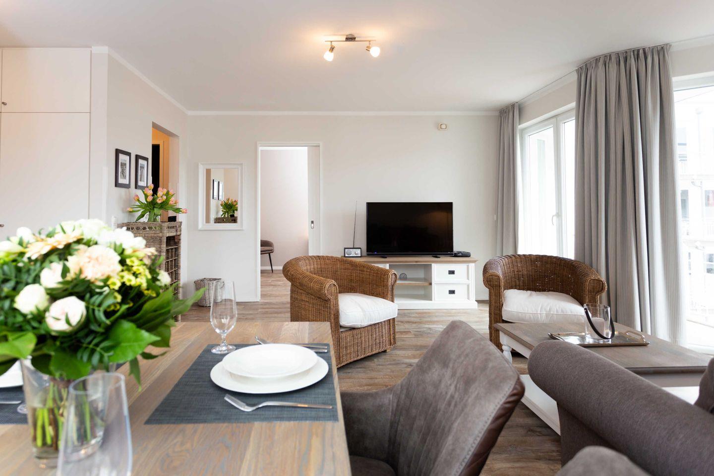 Ferienwohnung mit Balkon für 4 Personen; Komfort-Ausstattung der Wohnung im 2. OG mit 1 Schlafzimmer (2 Zimmer / 55 m²):