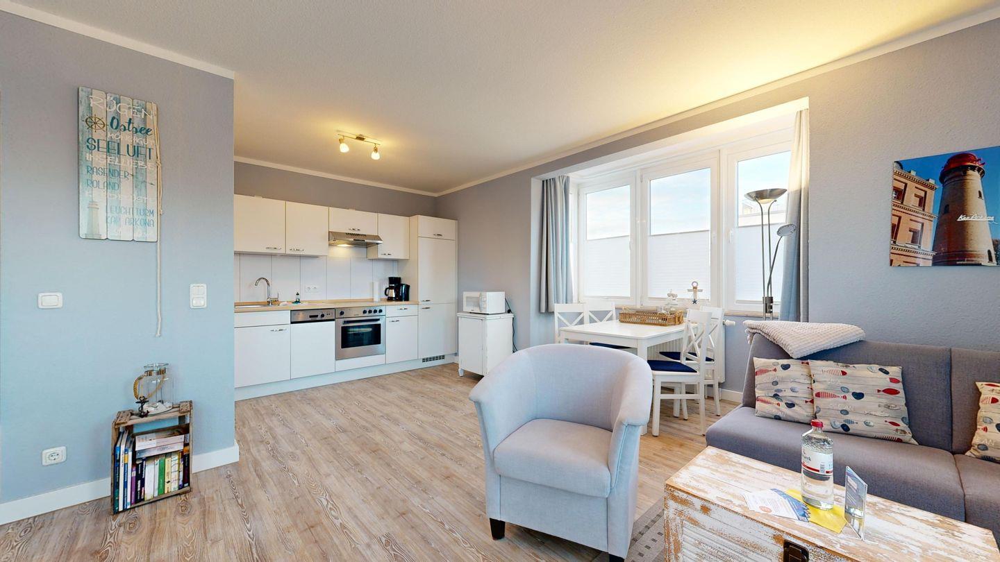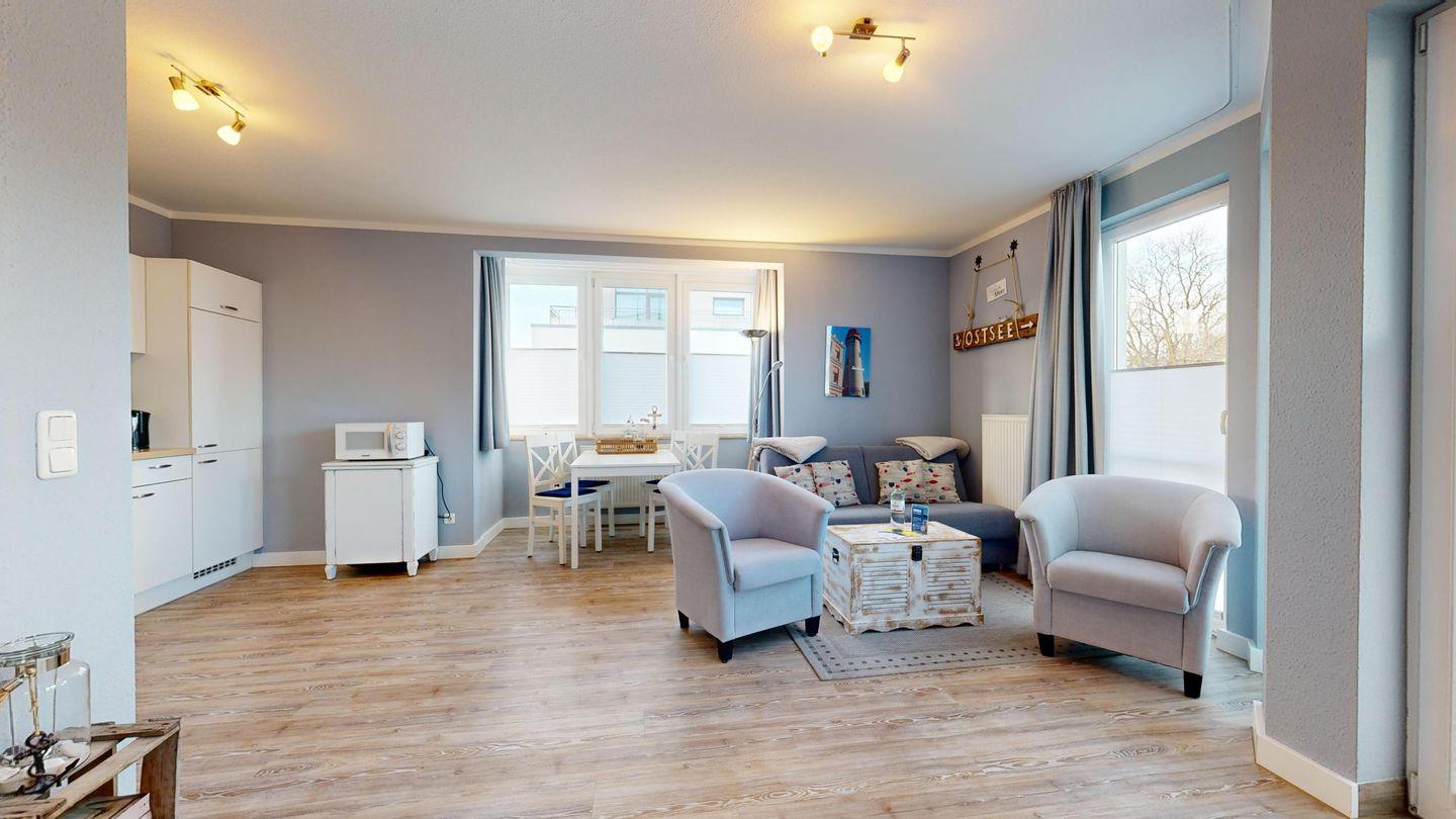 * Balkon mit Balkonmöbeln und eingeschränktem Ostseeblick (Nordwest-Ausrichtung)