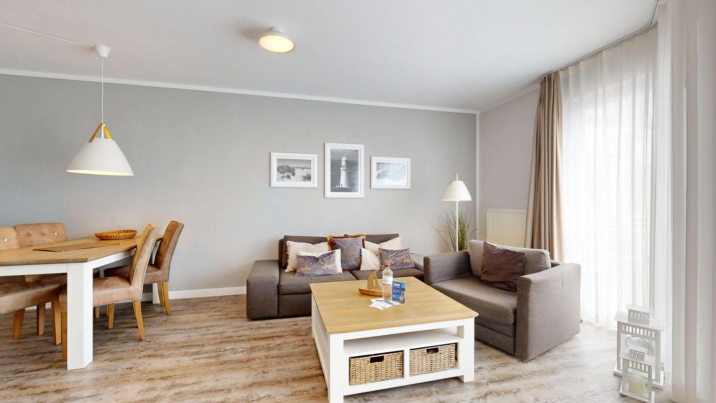 * Wohnzimmer mit Couchgarnitur, 1 Sessel (ausziehbar), Flachbild-TV, Radio, Internetzugang (WLAN inkl.), Esstisch