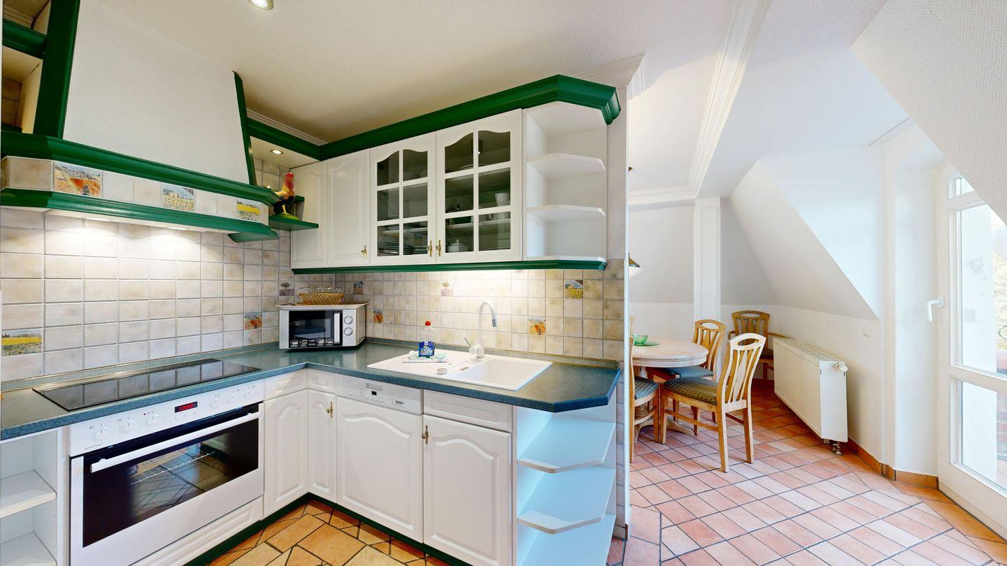 * Komfortable Küche: Ceran-Herd mit Backofen, Spülmaschine, Mikrowelle, Gefriermöglichkeit, Wasserkocher, Toaster und Kaffemaschine