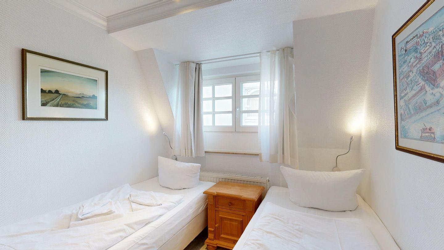 * 1 Schlafzimmer mit zwei Einzelbetten, Schrank