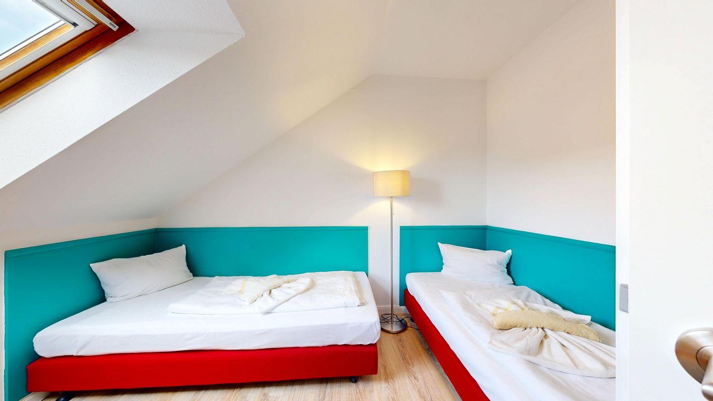 * 1 Schlafzimmer mit zwei Einzelbetten