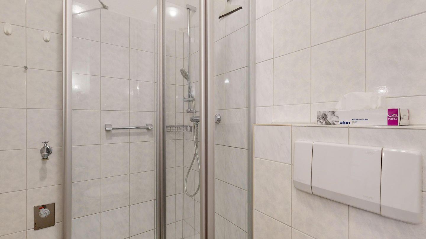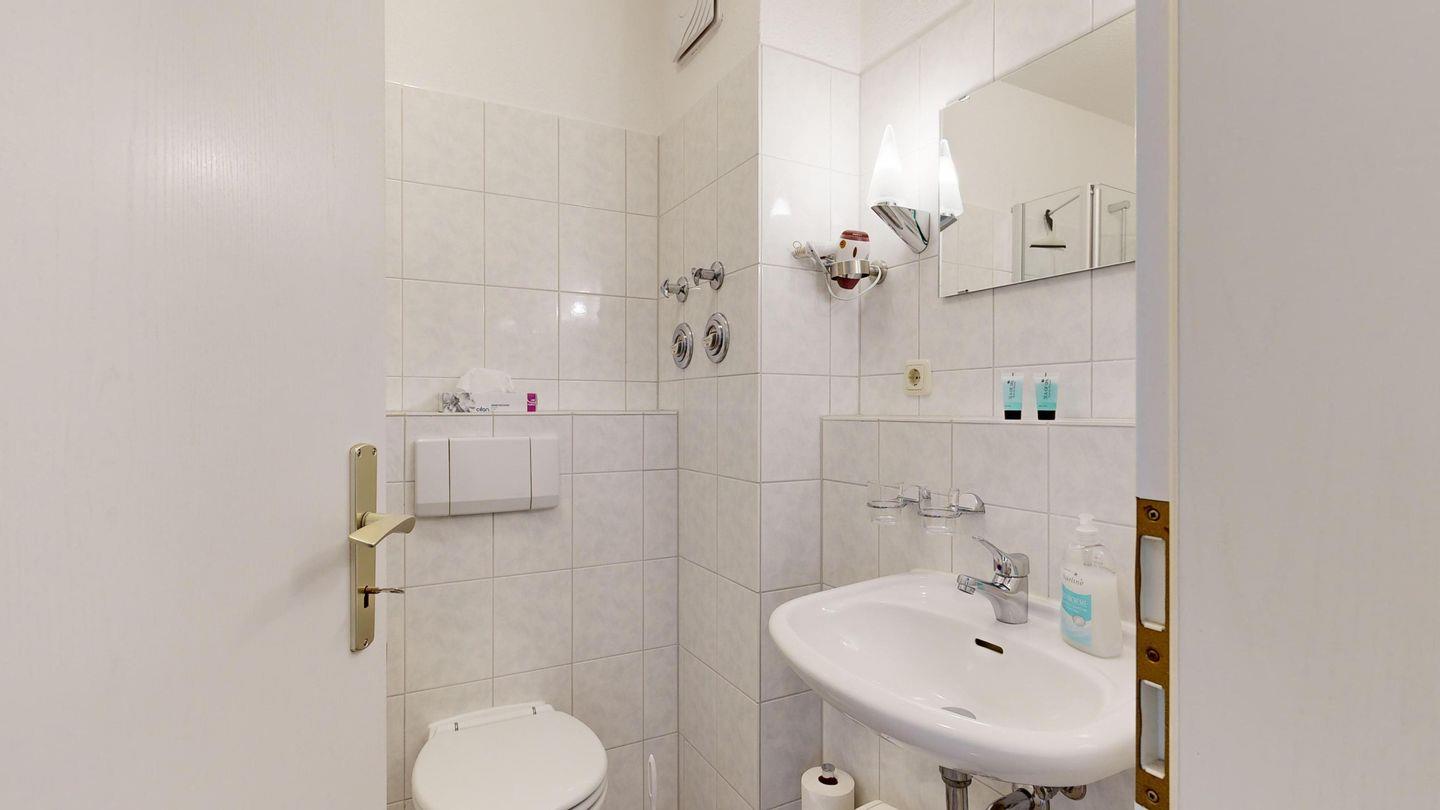 * Dusche (Tiefeinsteiger), WC, Haartrockner