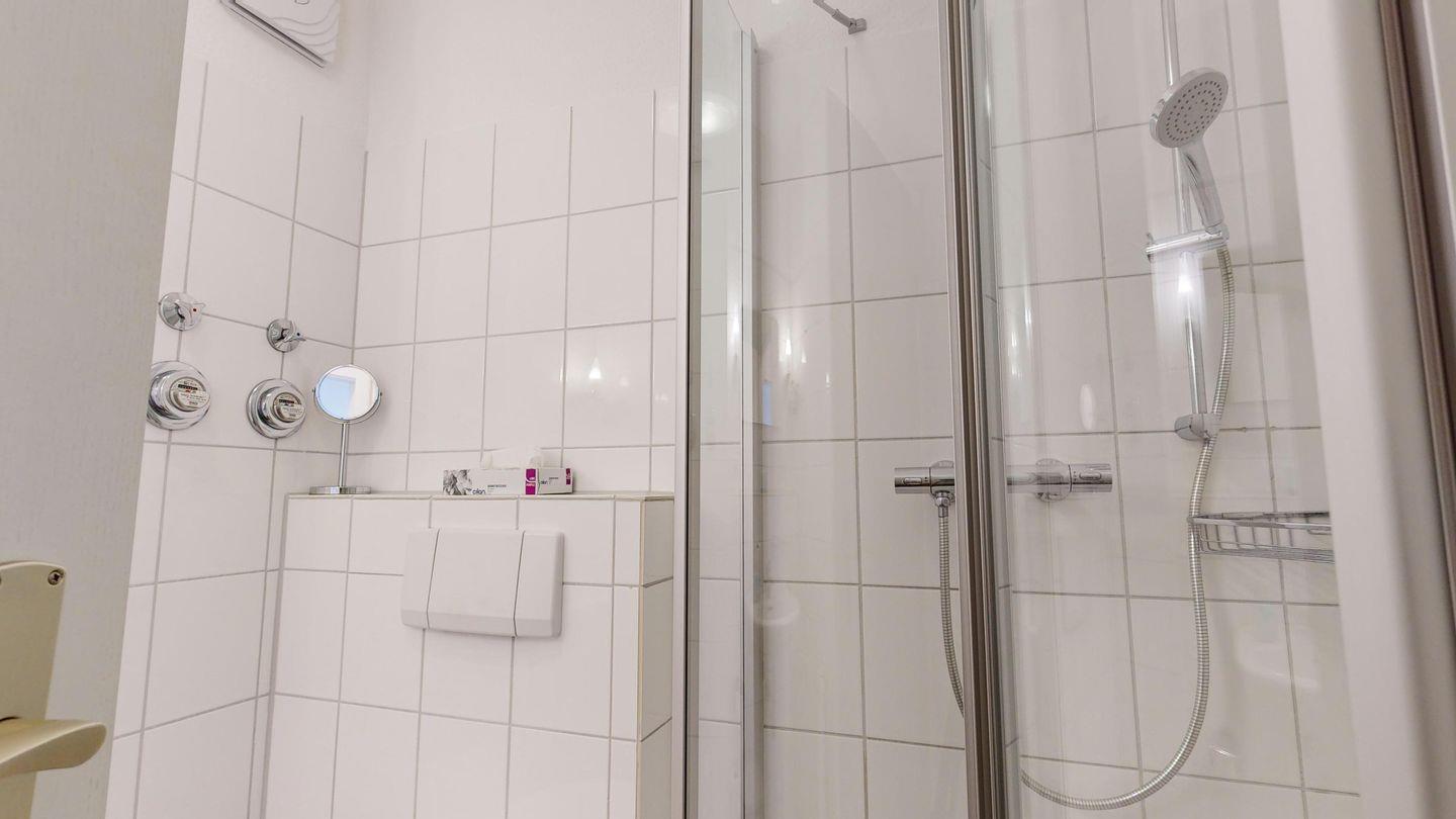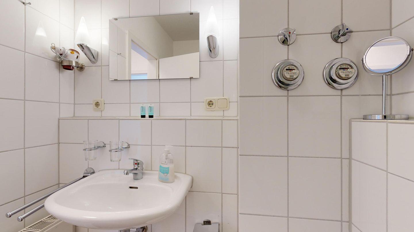 * Dusche (Tiefeinsteiger), WC, Haartrockner