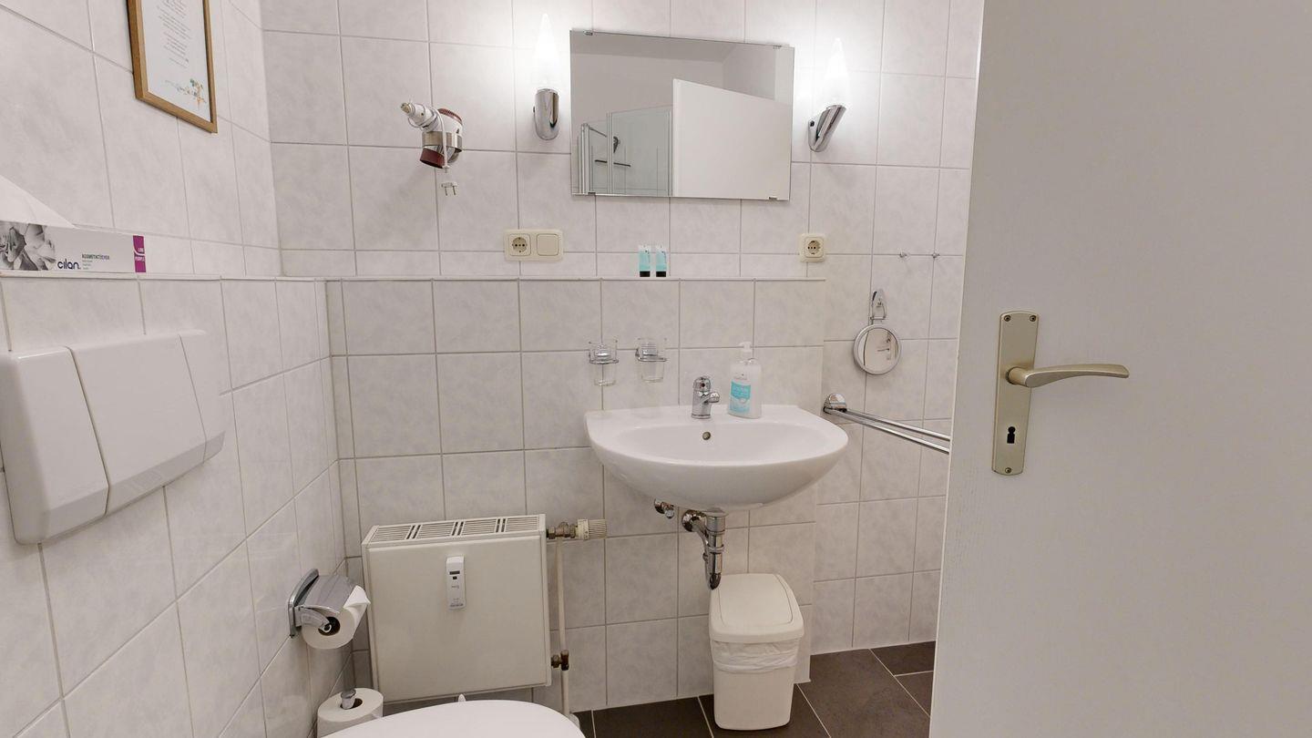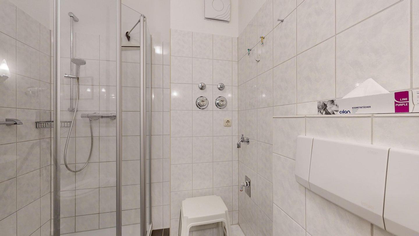 * Dusche (Tiefeinsteiger), WC, Haartrockner