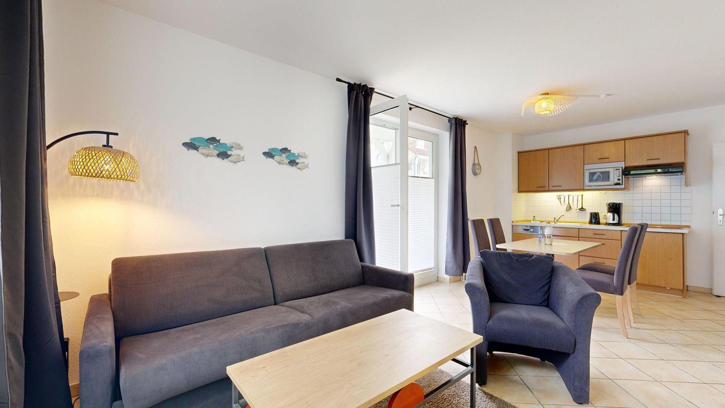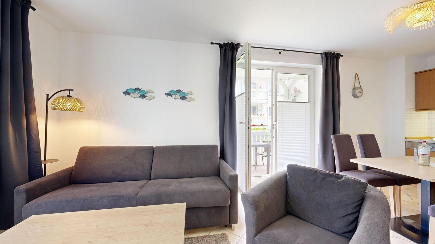 * Wohnzimmer: Couchgarnitur (Schlafgelegenheit für 2 Personen), Kabel-TV, Stereoanlage, Internetanschluss-WLAN, Esstisch