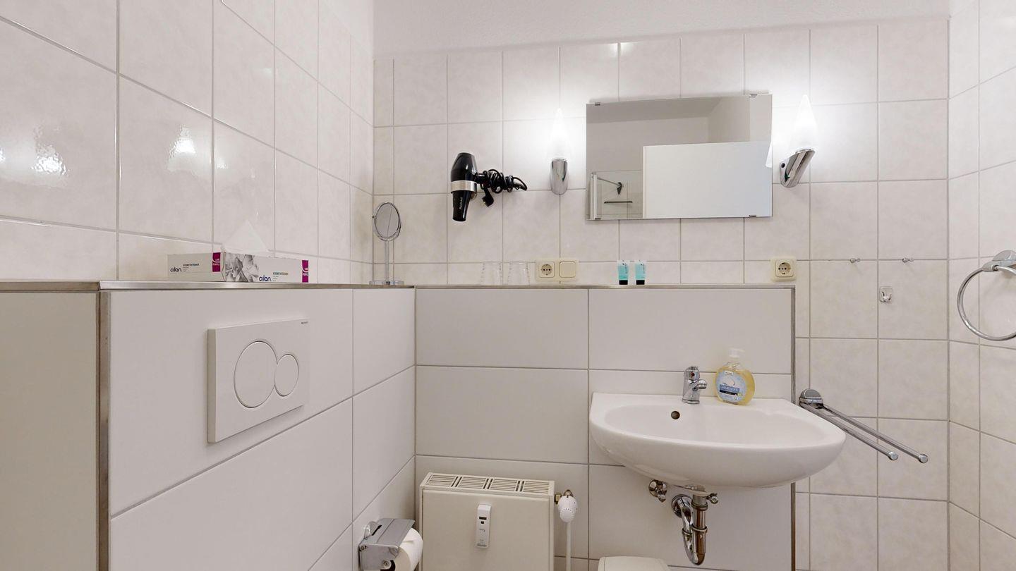 * Dusche (Tiefeinsteiger), WC, Haartrockner