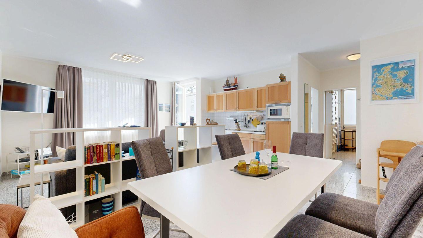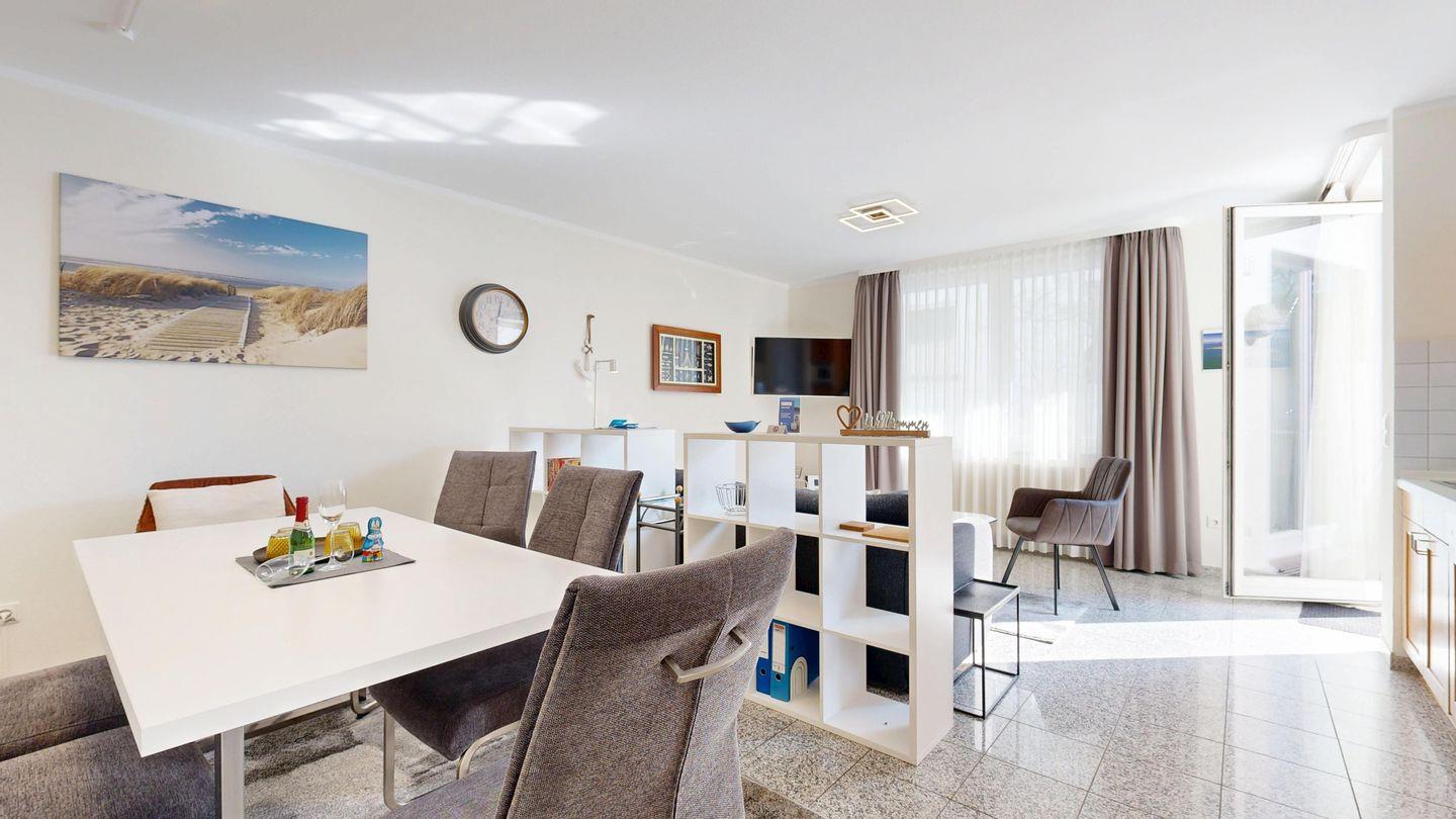 Für alle, die Wert auf Komfort legen: strandnahe Lage, hauseigene Tiefgarage sowie ein Schwimmbad und eine Sauna im Gebäude – ergänzt durch eine einladende, gemütliche Wohnung, in der man sofort ankommt und sich wohlfühlt.