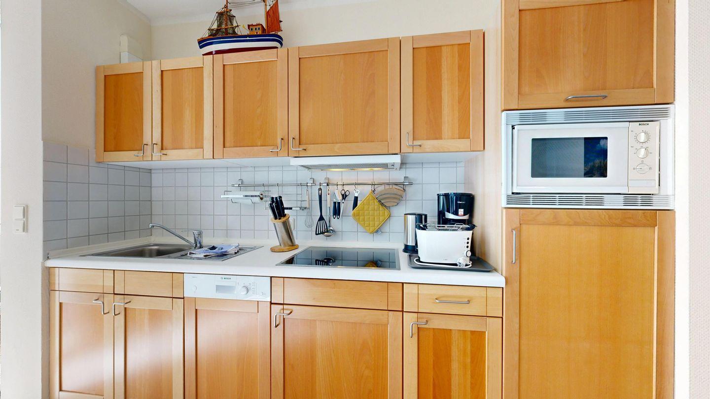 * Küche mit E-Herd, Kühlschrank, Spülmaschine, Mikrowelle, Wasserkocher, Kaffeemaschine, Toaster , Eierkocher, Handrührgerät, Stabmixer, Air Fryer