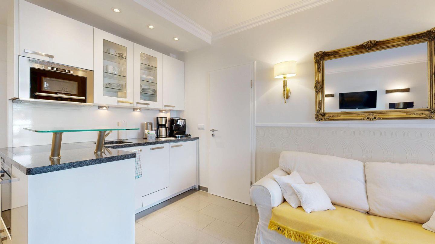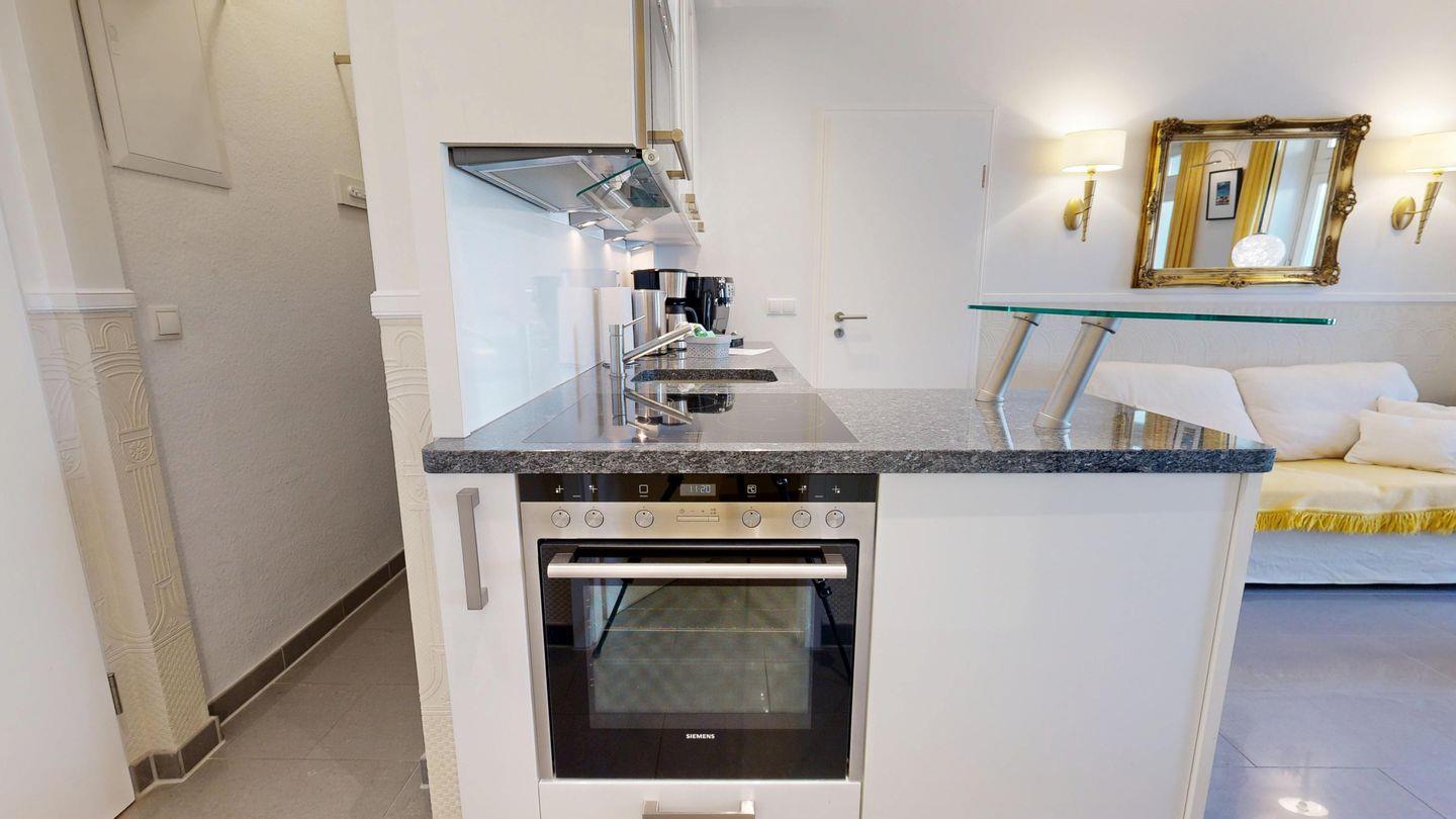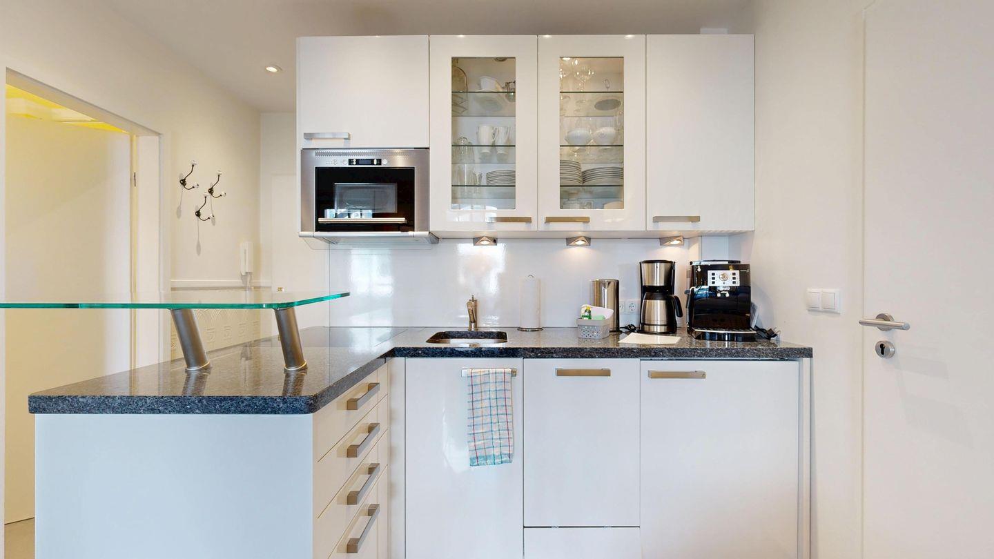 * Küche mit E-Herd, Backofen, Spülmaschine, Mikrowelle, Kaffeemaschine, Wasserkocher