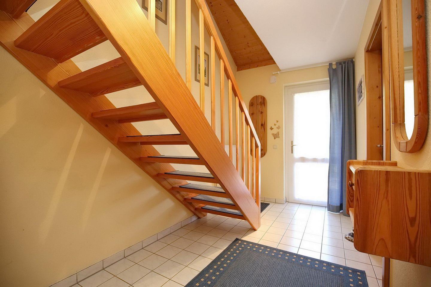 Im oberen Schlafzimmer mit einem zweiten TV-Gerät und DVD-Player stehen als Schlafgelegenheit ein Doppelbett (2 x 90 x 200 cm) und im unteren Schlafzimmer zwei gemütliche Einzelbetten (je 90 x 200 cm) zur Verfügung. Für die kleinen Gäste gibt es kostenlos einen Bollerwagen (ohne Rechtsanspruch).