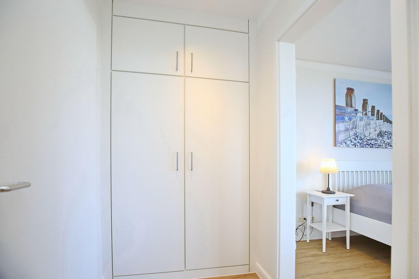 Genießen Sie auf der mit einem Strandkorb möblierten Dachterrasse den wundervollen Seeblick. Der Wohn-/ Schlafbereich ist mit einem Doppelbett (1 x 160 x 200 cm ), sowie zwei Sesseln eingerichtet. Stauraum für Ihre Garderobe gibt es im Einbauschrank auf dem Flur. Für Zeitvertreib sorgt eine Stereoanlage und ein Flachbild-TV.