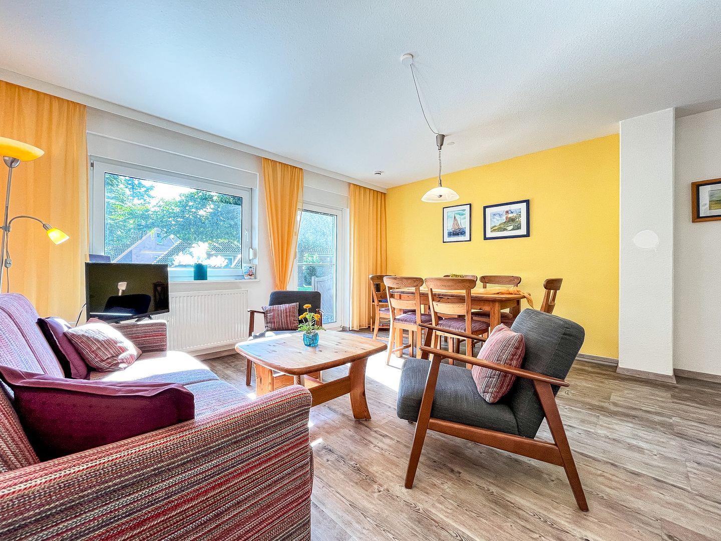 Das gemütlich eingerichtete, 54 m² große Ferienhaus Nr. 61 c verfügt über ein Wohnzimmer mit Küchenzeile, 2 Schlafzimmer, 1 Duschbad und 1 Gäste-WC. 2 Terrassen sorgen dafür, dass du den ganzen Tag die Sonne genießen kannst.