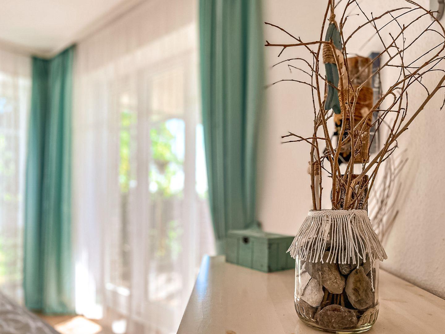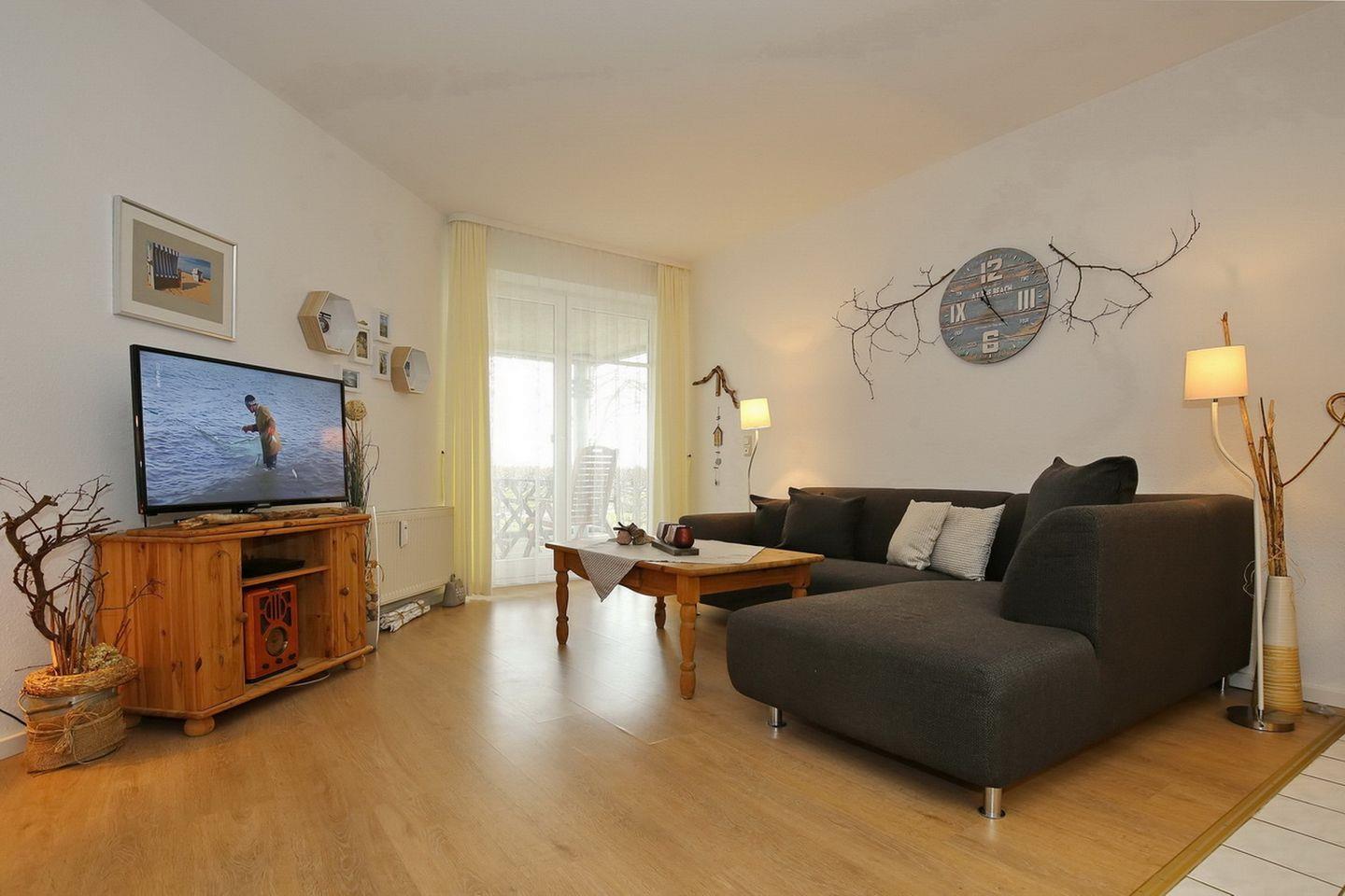 Die Wohnung mit Meerblick befindet sich im Erdgeschoss im Haus 1 und ist ca. 50 m² groß. Du bewohnst ein Wohnzimmer mit Zugang zur möblierten Terrasse, ein Schlafzimmer, eine Küchenzeile und ein Duschbad. Zum Strand sind es von der Ferienanlage Dünenblick etwa 50 m.