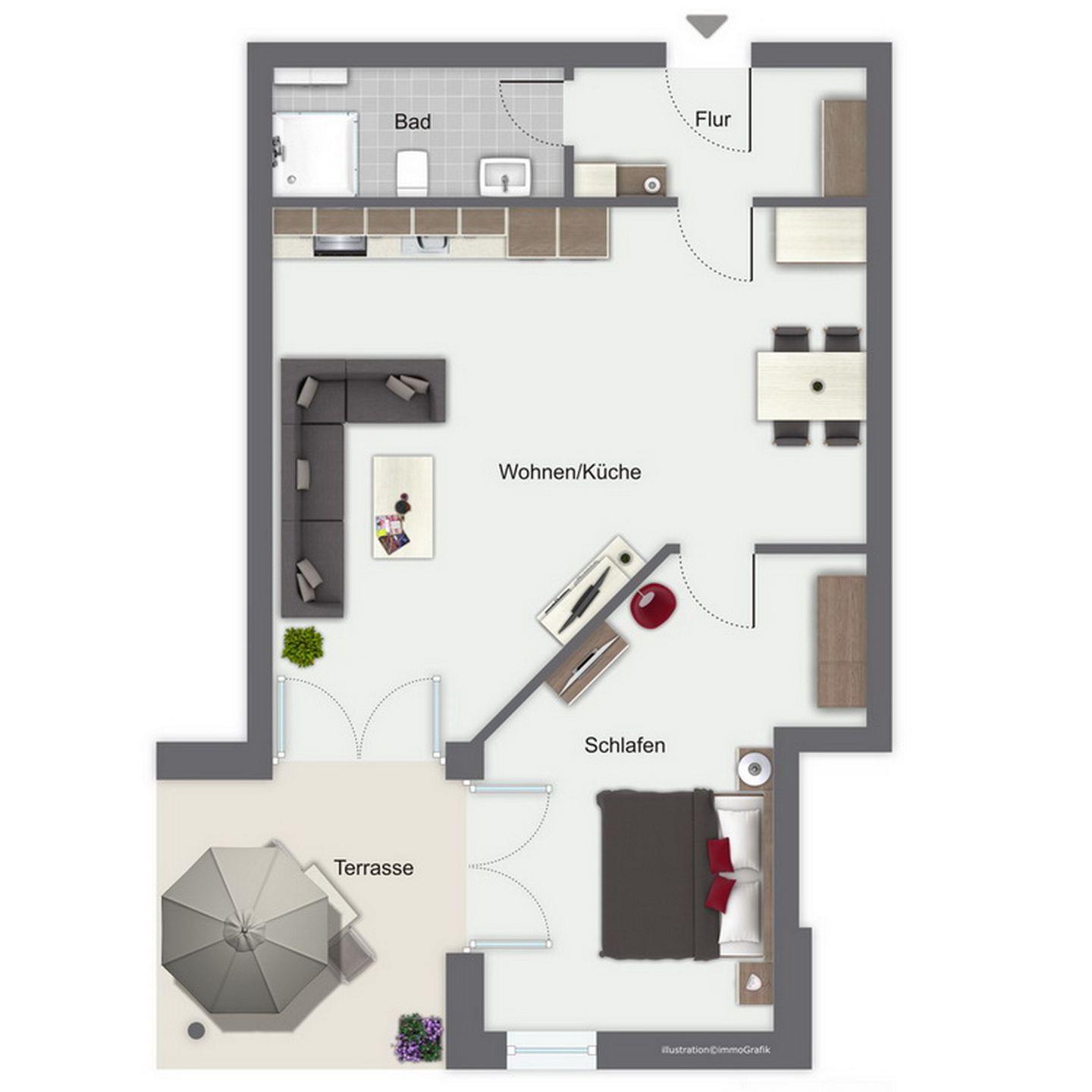 Die Ferienwohnung Nr. 5 in der Ferienanlage Dünenblick ist eine 2-Zimmer-Wohnung für bis zu 2 Personen.