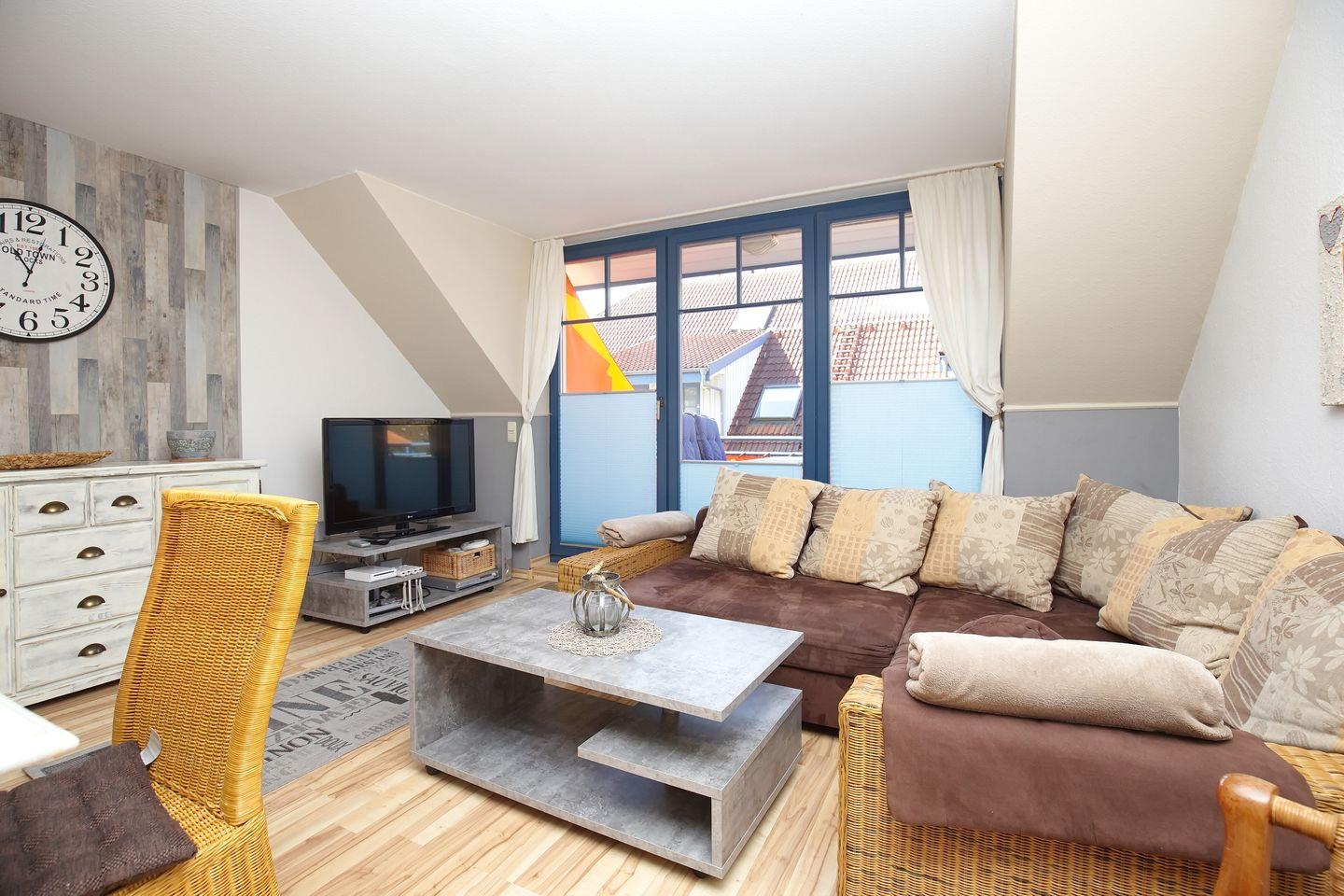 Im Wohnzimmer kannst du es dir auf dem Sofa gemütlich machen. Der Flachbild-TV, DVD-Player und eine Auswahl an Büchern, Spielen und DVDs sorgen für Abwechslung. Netflix via Firestick kann ebenfalls (ohne Gewähr) genutzt werden. Eine Spielekonsole (ohne Gewähr) sorgt für Spielspaß mit der ganzen Familie. Am Esstisch finden sechs Personen Platz. Über das Wohnzimmer aus gelangst du zum möblierten Balkon.