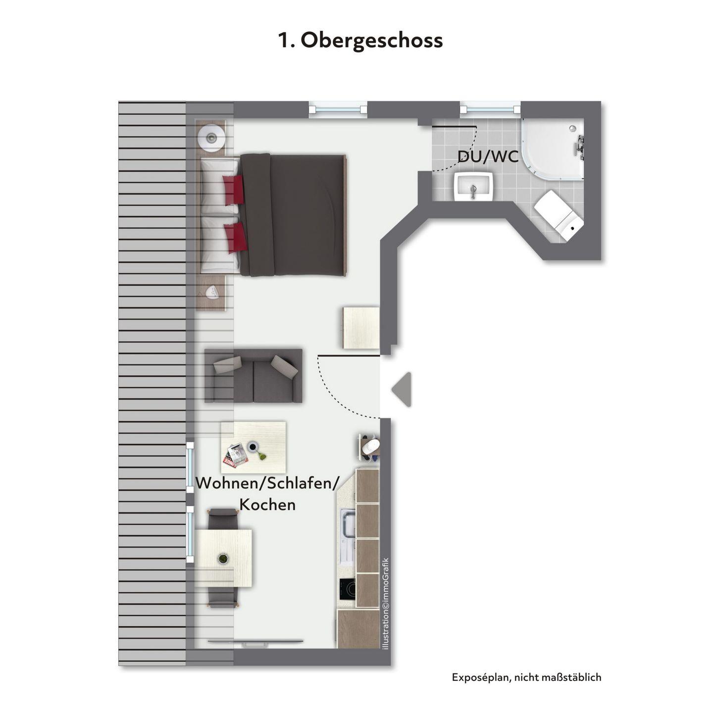 Das 1 - Zimmer - Appartement verfügt über eine integrierte Küche sowie einen Schlafbereich. Haustiere sind nicht erlaubt. Gartennutzung