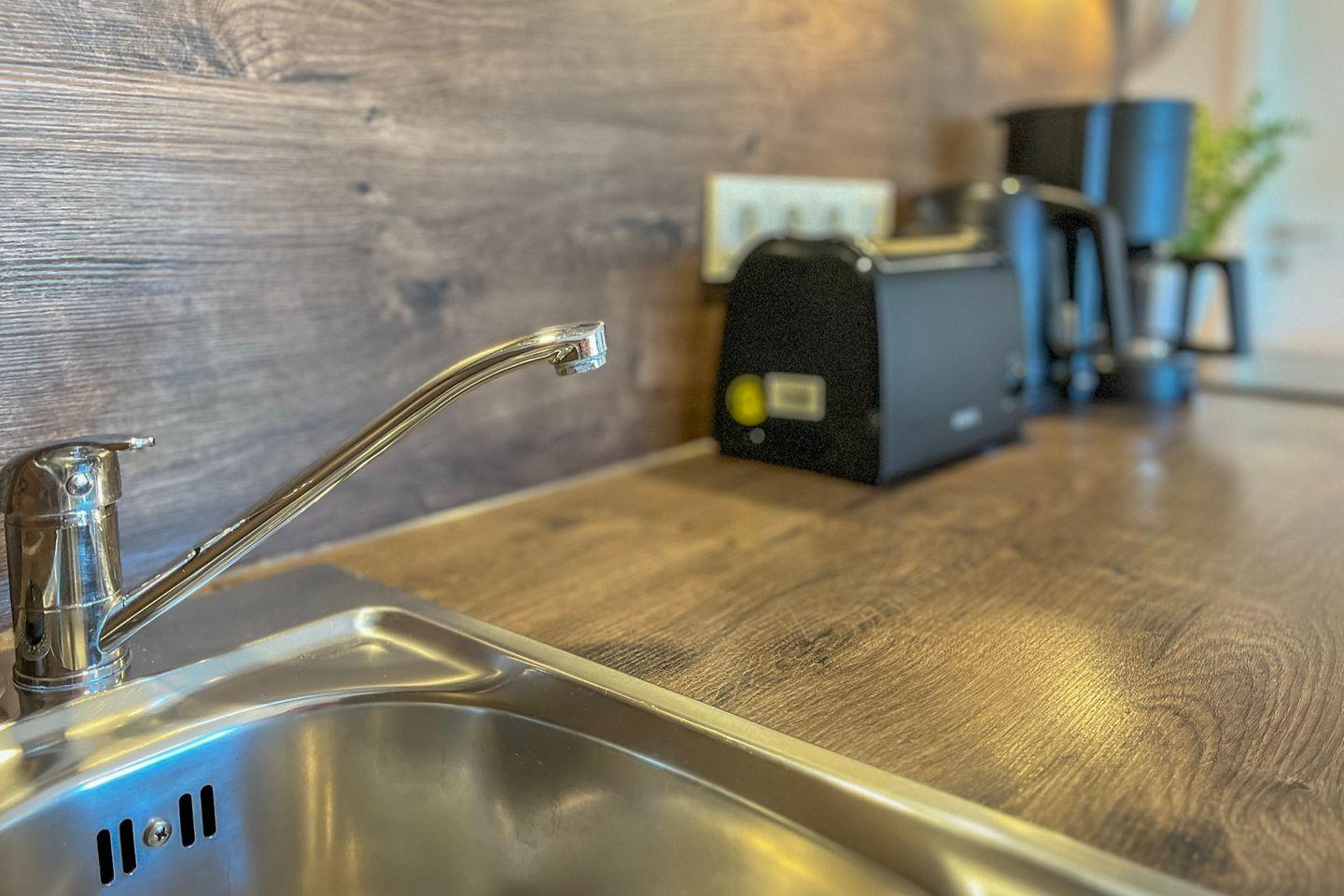 Die moderne Küchenzeile ist offen in den Wohnraum integriert und mit allem ausgestattet, was Du für Deinen Aufenthalt benötigst: Cerankochfeld, Backofen mit Mikrowellenfunktion, Kühlschrank mit Gefrierfach, Kaffeemaschine, Wasserkocher, Toaster sowie Kochutensilien und Geschirr.