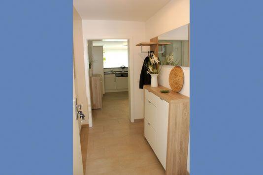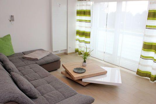 Das Wohnzimmer ist hell und einladend gestaltet. Eine komfortable Schlafcouch bietet bei Bedarf zusätzliche Schlafmöglichkeiten für zwei Personen. Die praktische Küchenzeile ermöglicht es Ihnen, Ihre Mahlzeiten ganz unkompliziert selbst zuzubereiten – perfekt für ein gemütliches Frühstück oder ein entspanntes Abendessen.