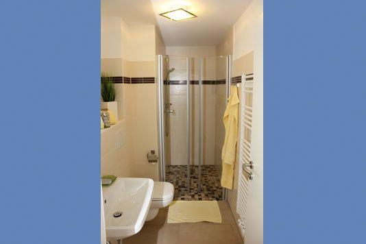 Das moderne Badezimmer ist mit Dusche und WC ausgestattet und rundet den Wohnkomfort des Appartements ab.
