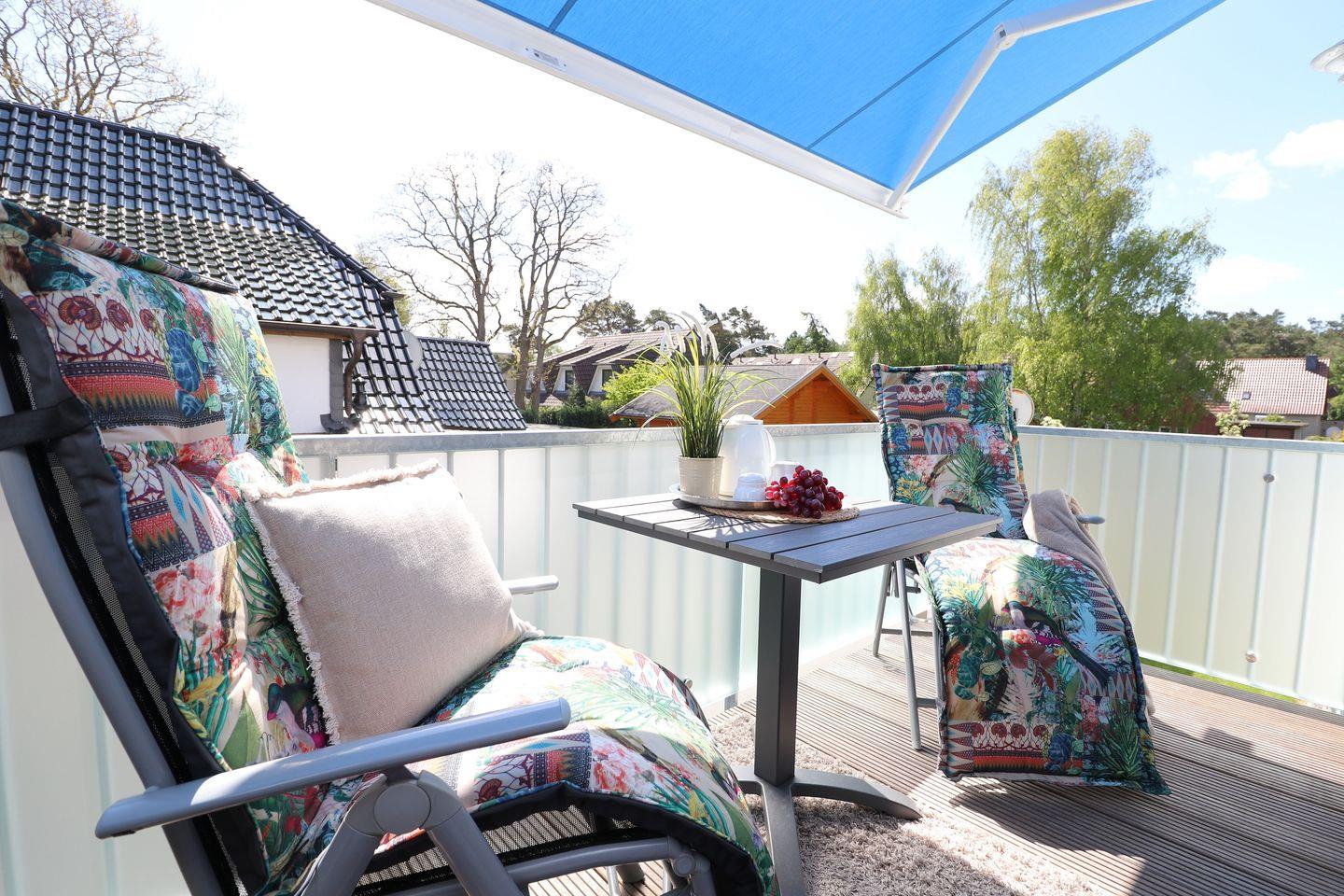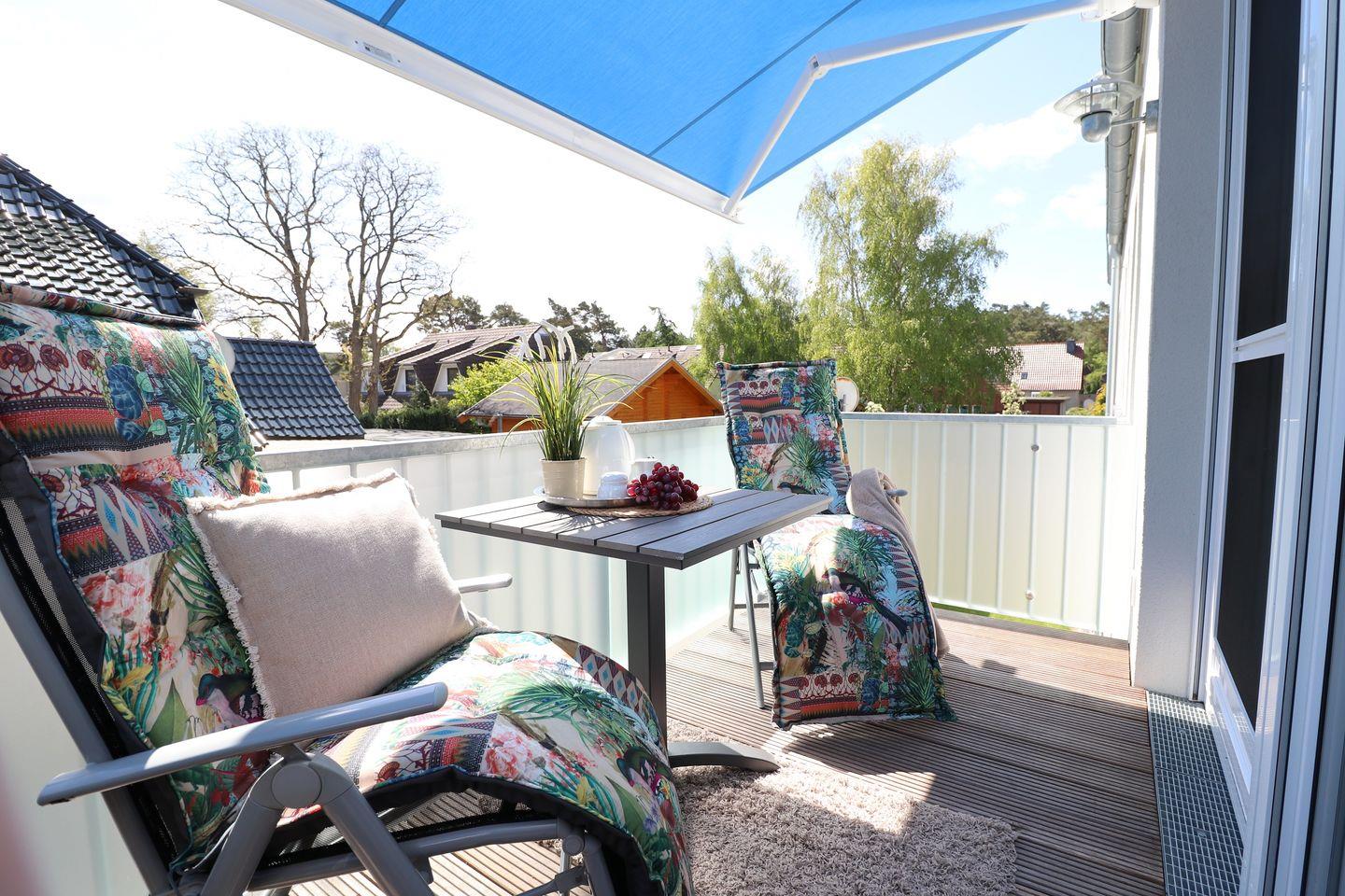 Ein besonderes Highlight ist der Balkon, auf dem Sie die frische Ostseeluft genießen können. Dank der Markise finden Sie auch an sonnigen Tagen angenehmen Schatten – ideal für entspannte Stunden im Freien.