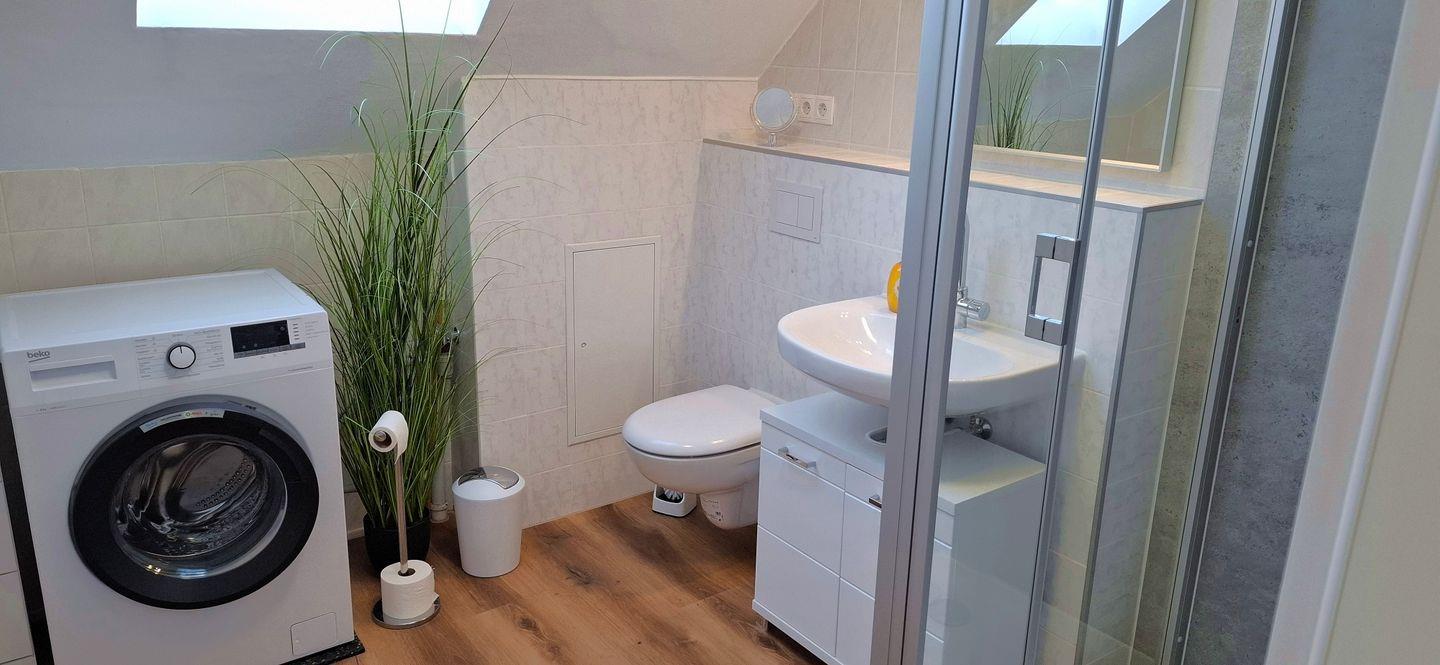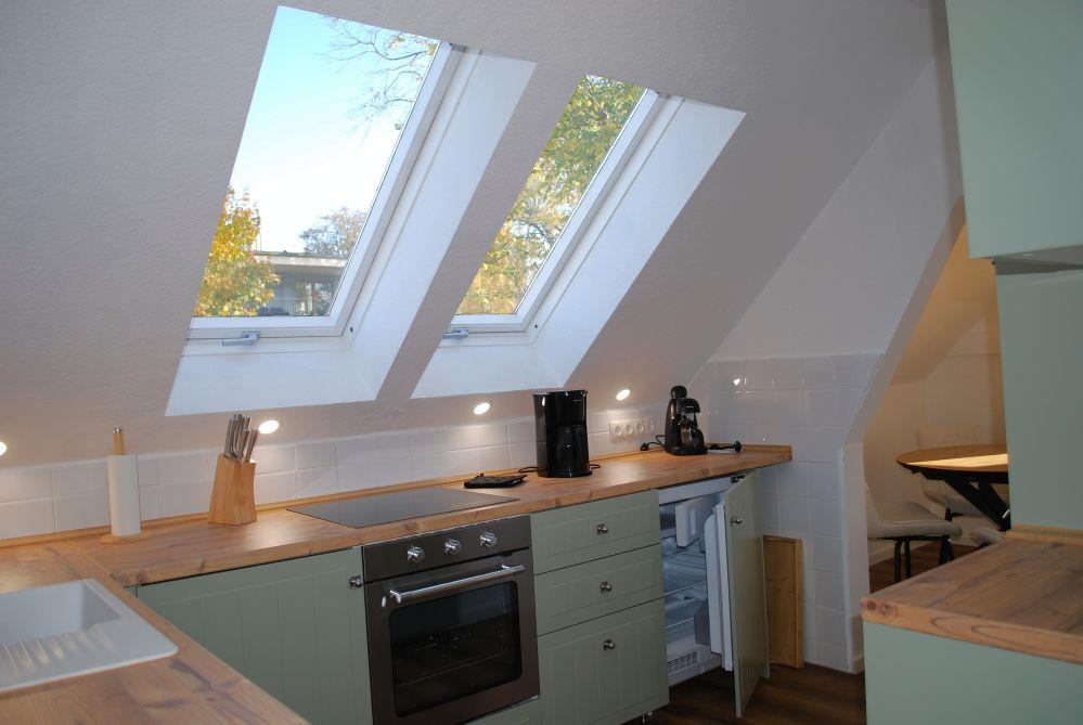 Im Bad befindet sich eine Waschmaschine. Die Küche ist vollständig ausgestattet inklusive Ceranfeld, Backofen und neben der Kaffee- auch eine Espressomaschine.